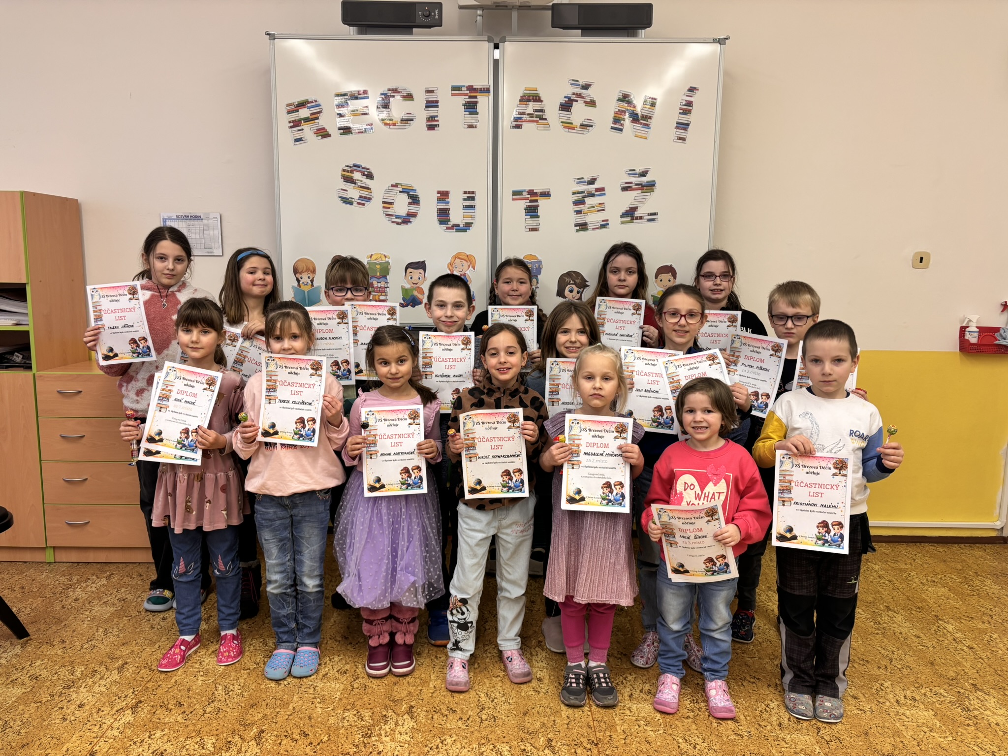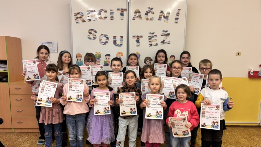 10.února 2026 se v naší škole uskutečnilo školní kolo recitační soutěže.  V letošním školním kole se představilo 18 recitátorů od 1. do 5.třídy, kteří soutěžili ve třech kategoriích.