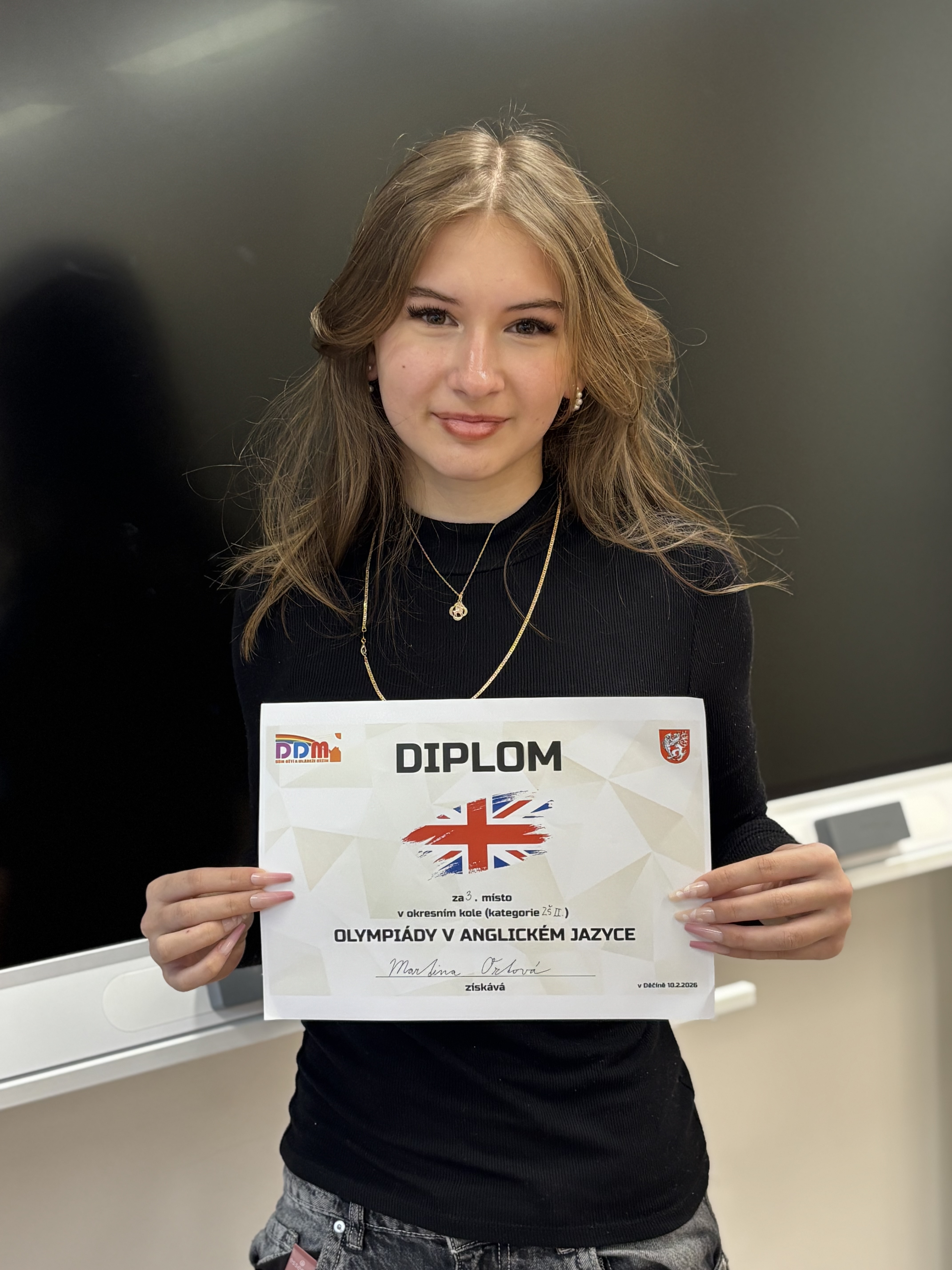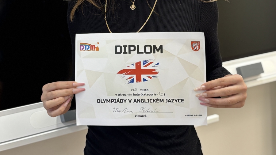 Naše škola měla i v letošním okresním kole olympiády v anglickém jazyce své zastoupení. Soutěž proběhla 10. února na ZŠ Komenského v Děčíně a zúčastnily se jí dvě naše studentky Sofie Chvojková z 6. A a Martina Ortová z 9. B.