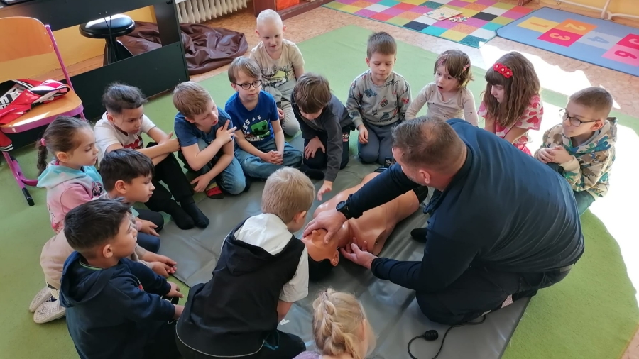 Jan Charvát, záchranář děčínské záchranky s cca 20letou praxí, přišel za našimi dětmi, aby jim ukázal základy první pomoci a zodpověděl jim zvídavé otázky ohledně práce záchranáře.