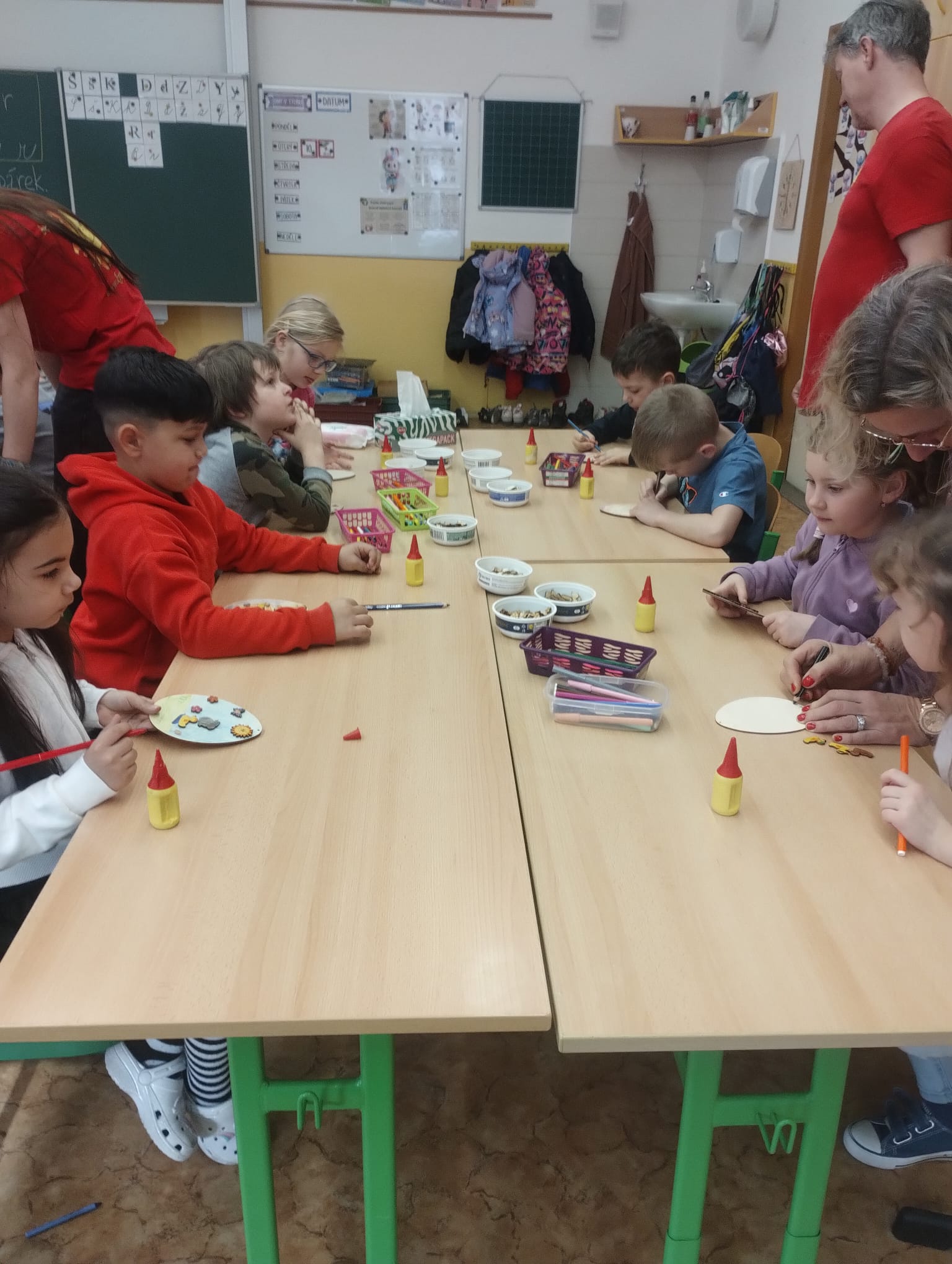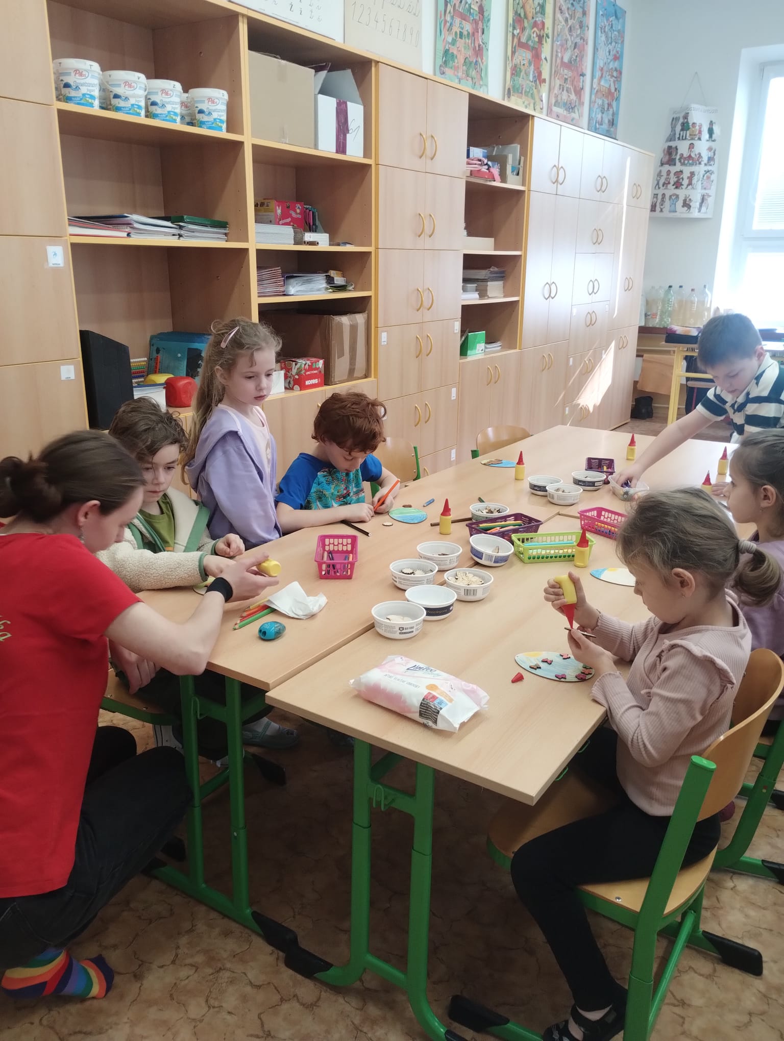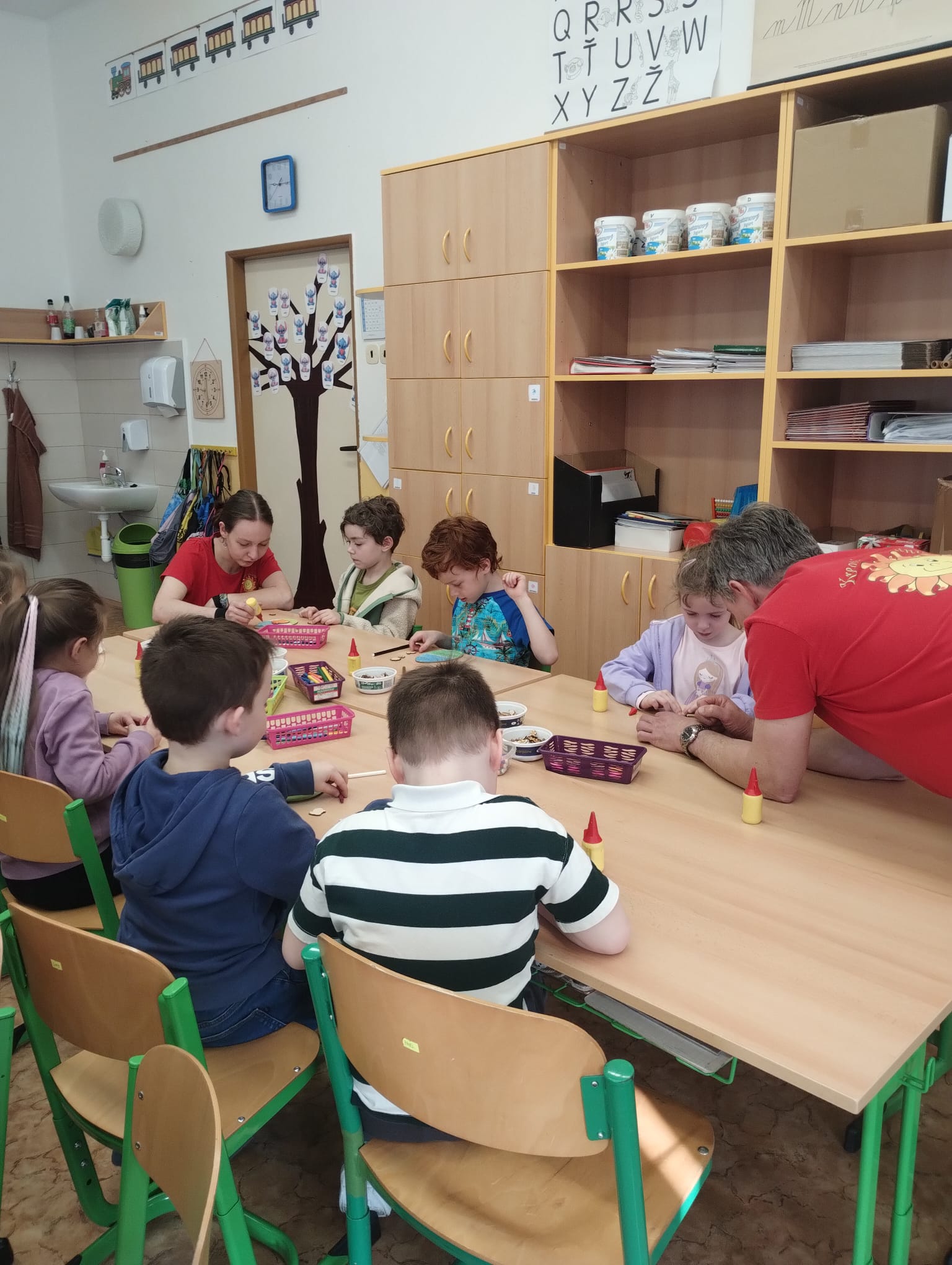 V úterý 10.3. se naši prvňáčci zúčastnili dílniček na téma Velikonoce a vyrobili si 3D velikonoční vajíčko ze dřeva. To nám umožnila paní Kučerová a její pomocníci z Prahy, kteří nás navštívili. Zapojily se i paní učitelky a asistentky. Všem se tvoření velice líbilo. Marcela Ledvinková