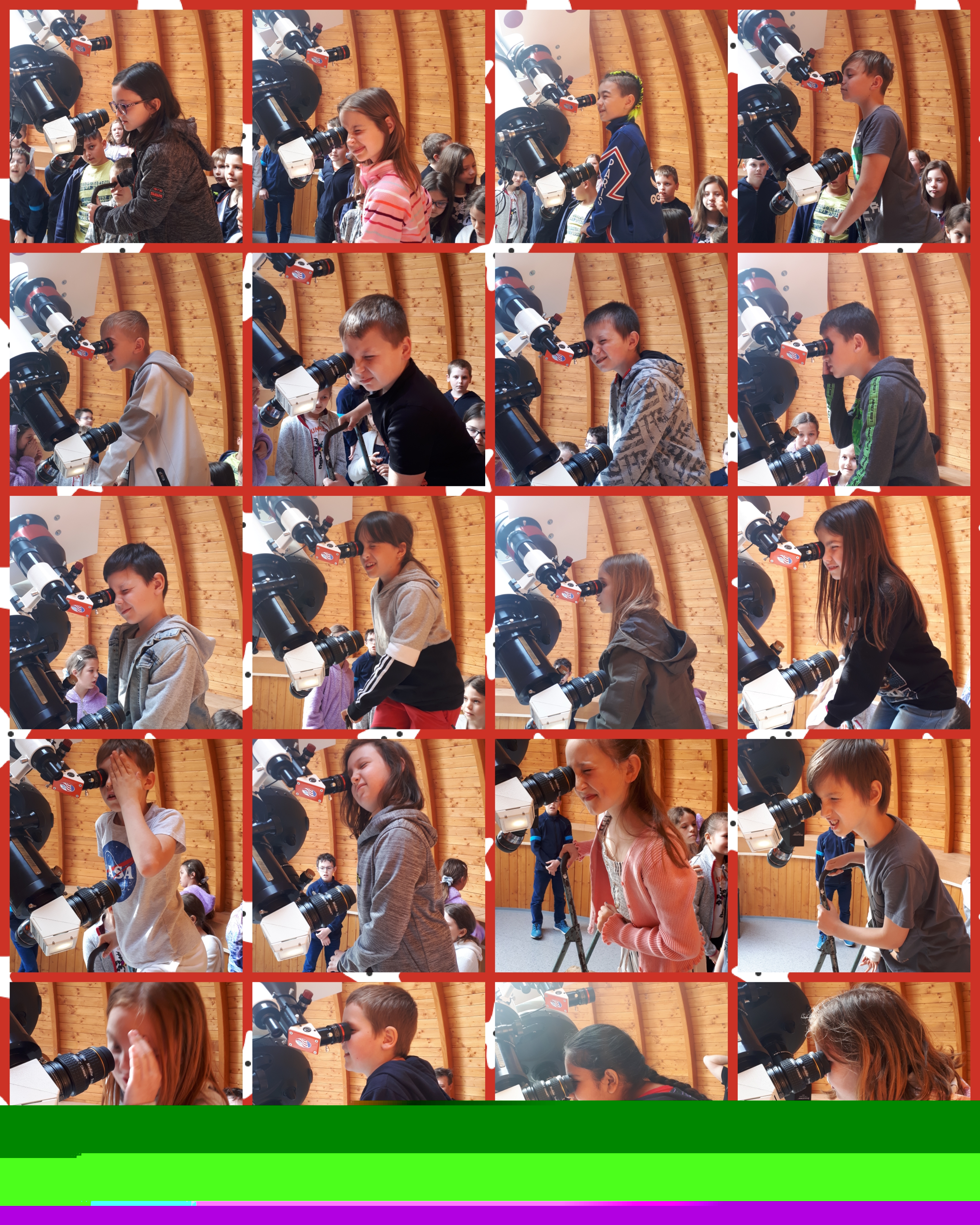 Po příjezdu a svačině děti vystoupaly do otočné kopule, kde si prohlédly hvězdářský dalekohled. Dalekohledem se podívaly na Slunce. Další program probíhal v učebně. Zde děti viděly sluneční soustavu na obrázcích a poslechly si zajímavosti o planetách. Následně si mohly zakoupit upomínkové předměty a také si zahrát různé hry spojené s vesmírem na interaktivních televizorech, které jsou rozmístěny po celé hvězdárně. Poté už jsme se rozloučili a vydali se na cestu zpět.