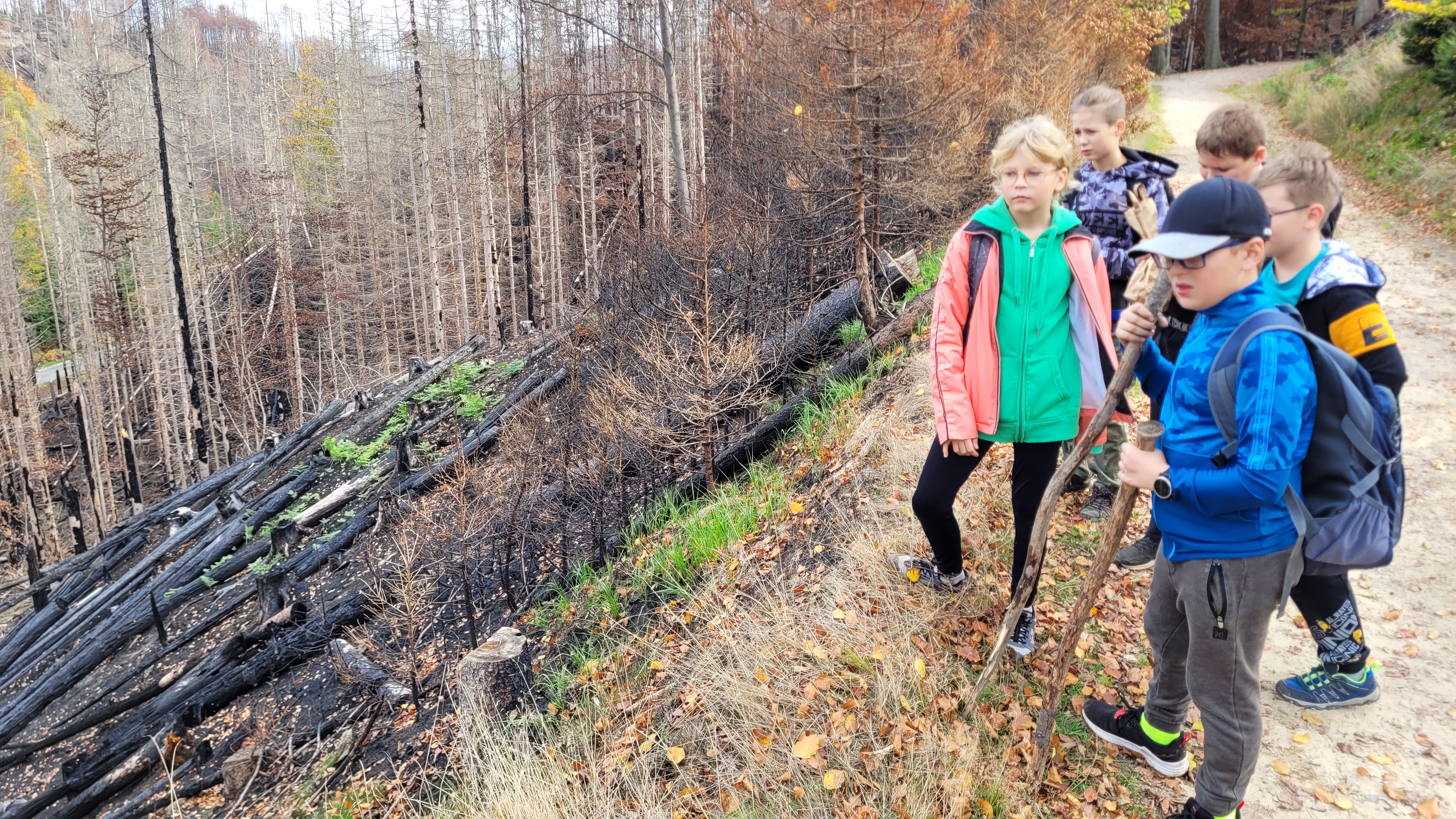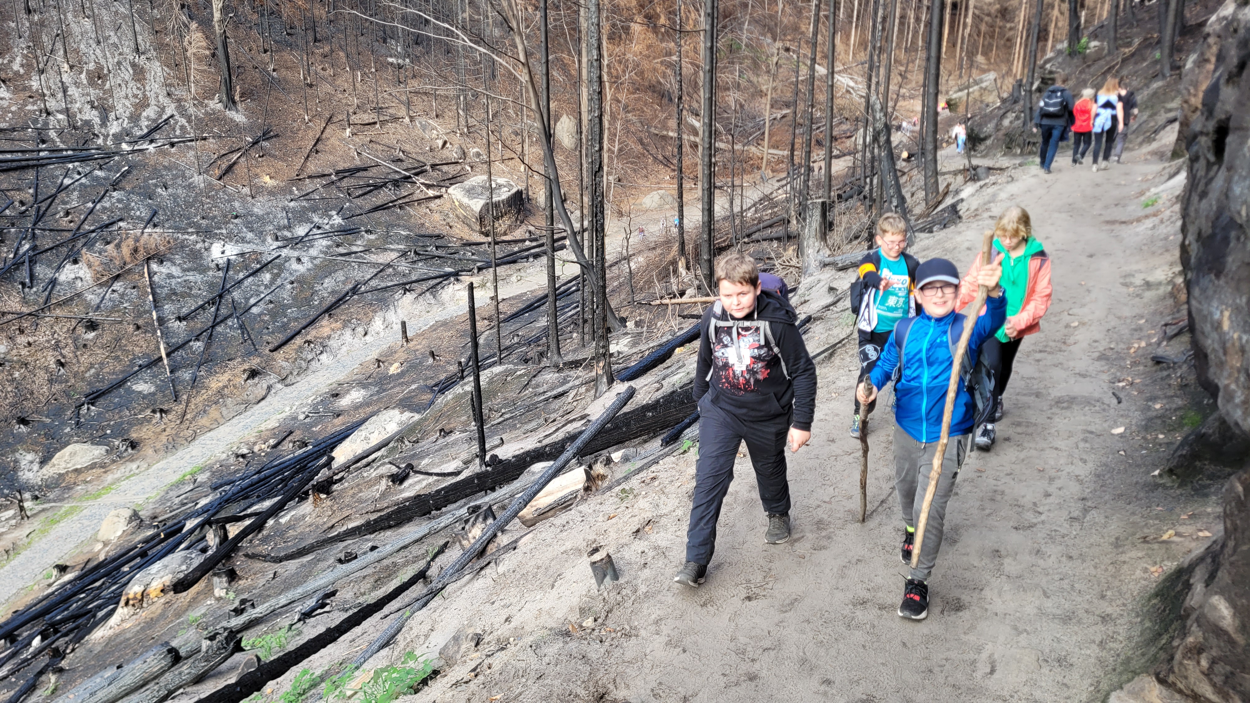 Během exkurze si žáci užili přírodu se vším všudy, nechodili jen po cestách, ale i mimo ně, hledali houby, které pak byly určovány mykologem. Ze všech nálezů byl asi nejzajímavější květnatec Archerův, zvláštní druh houby původem z Austrálie a Tasmánie. Při výstupu na Pravčickou bránu jsme se všichni se zájmem prohlédli zkázu po požáru, který způsobila lidská nedbalost a neopatrnost. Žáci se zde dozvěděli něco málo z geologie, zoologie i botaniky, z posledně jmenovaného byly zejména demonstrovány adaptace rostlin na přežití požárů.