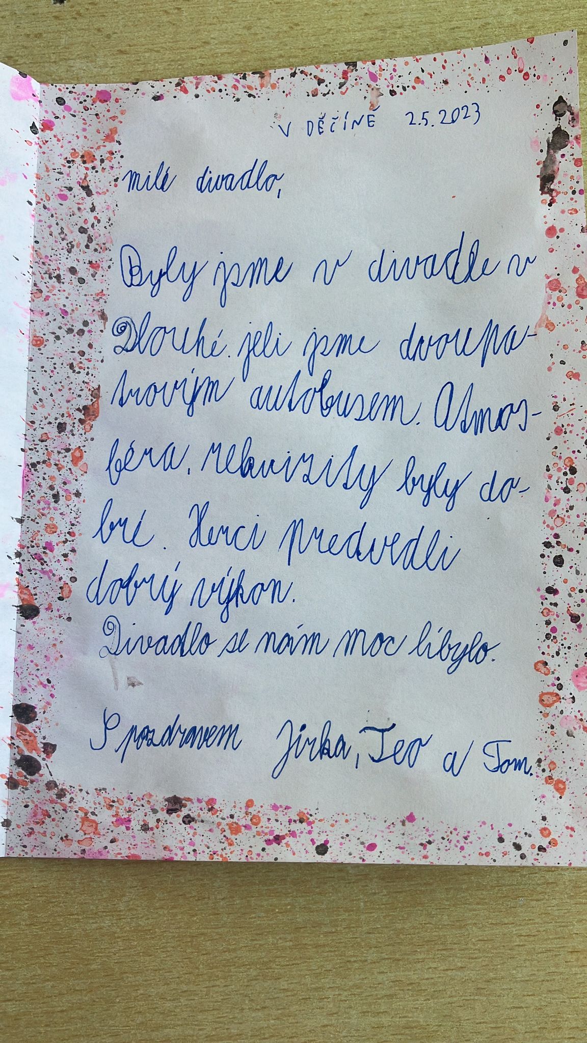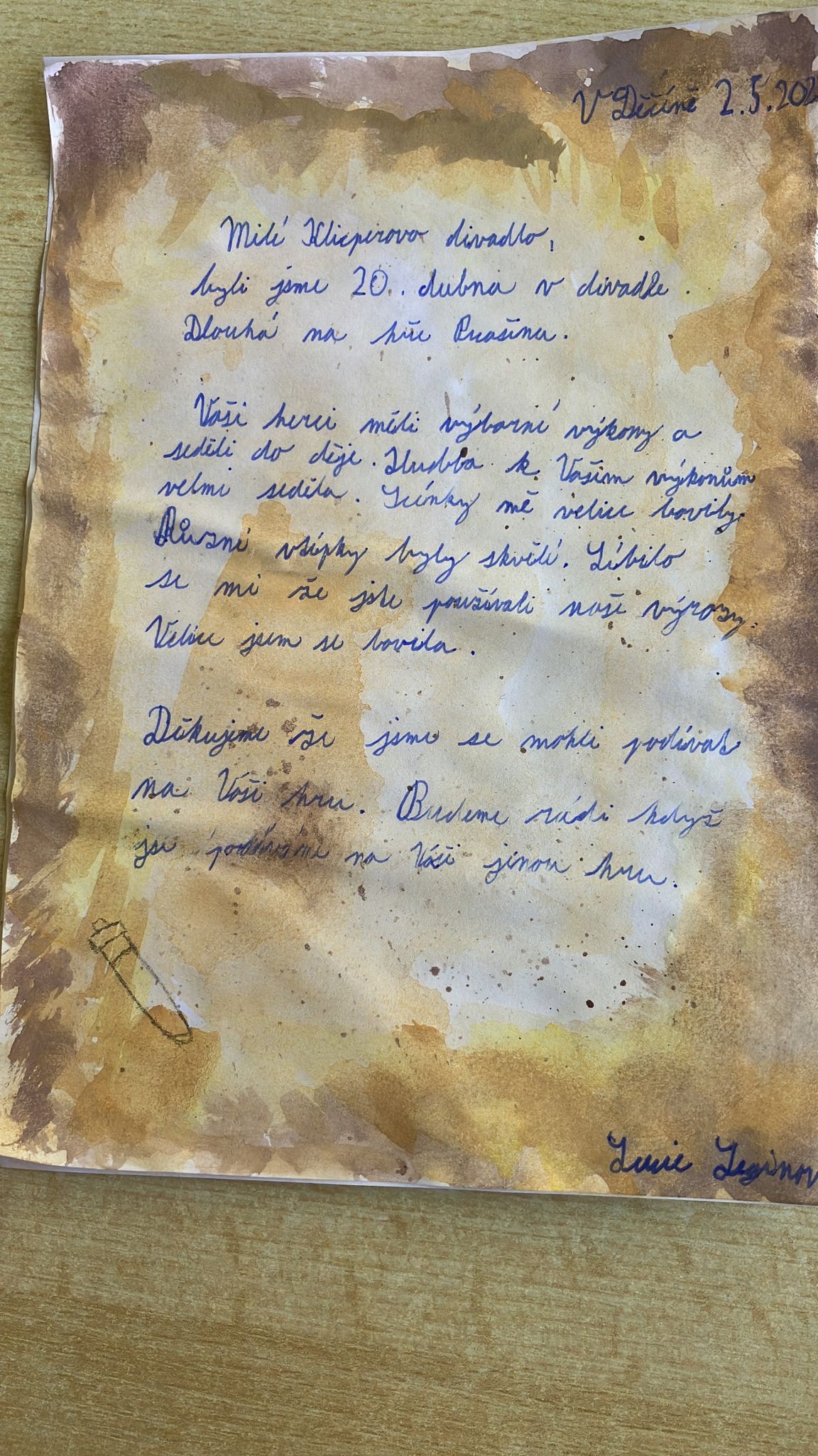 Pomyslnou tečkou na dortu pak byly dopisy žáků 6. tříd, které byly adresovány přímo hercům do divadla v Hradci Králové a které se jim také odeslaly. ![]()