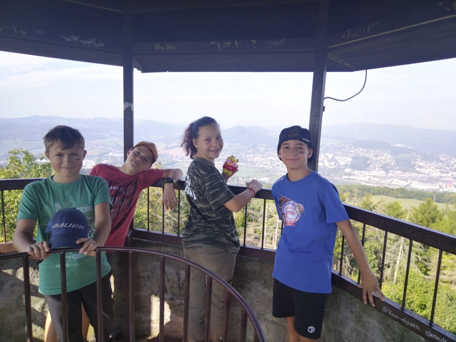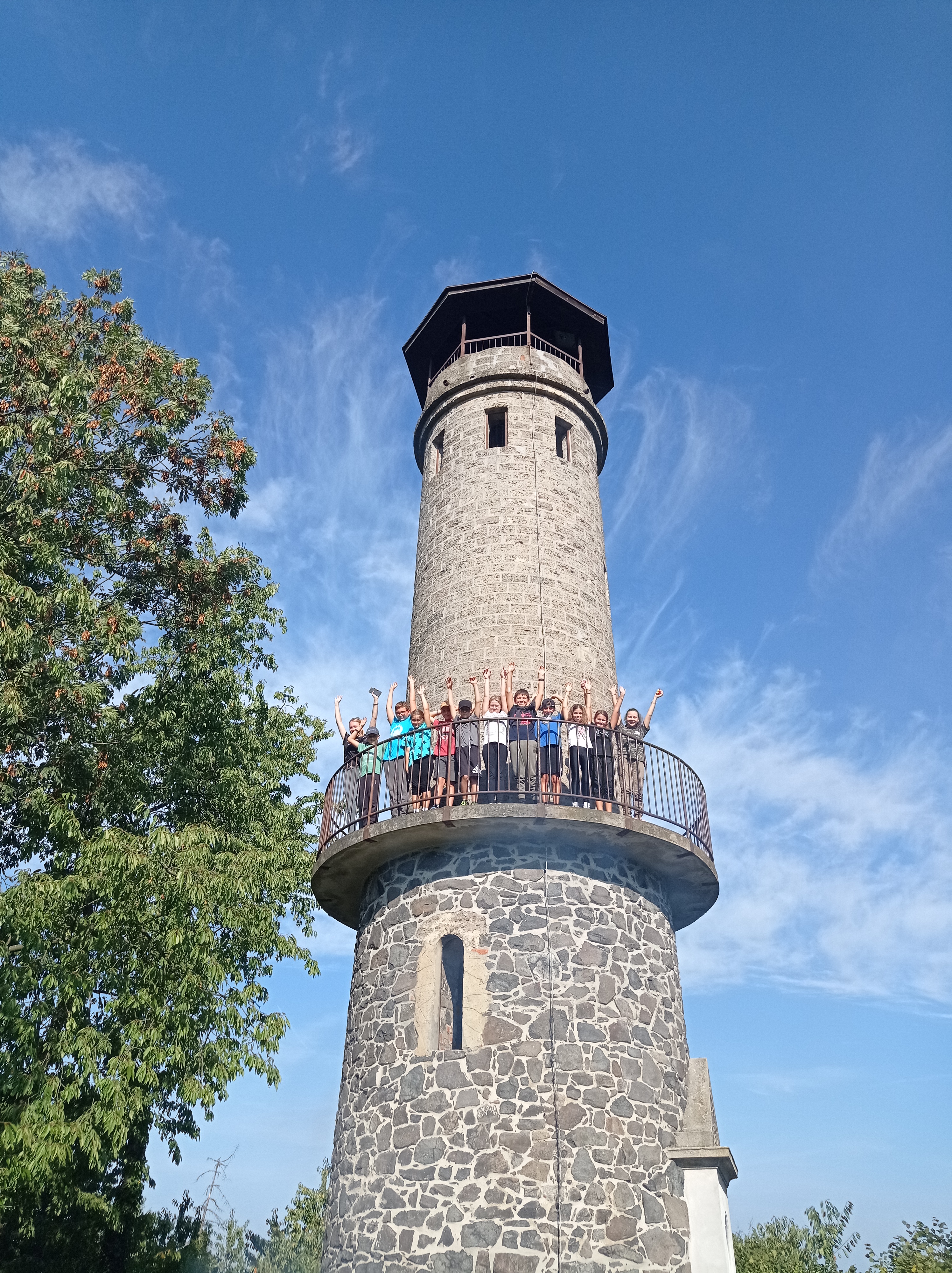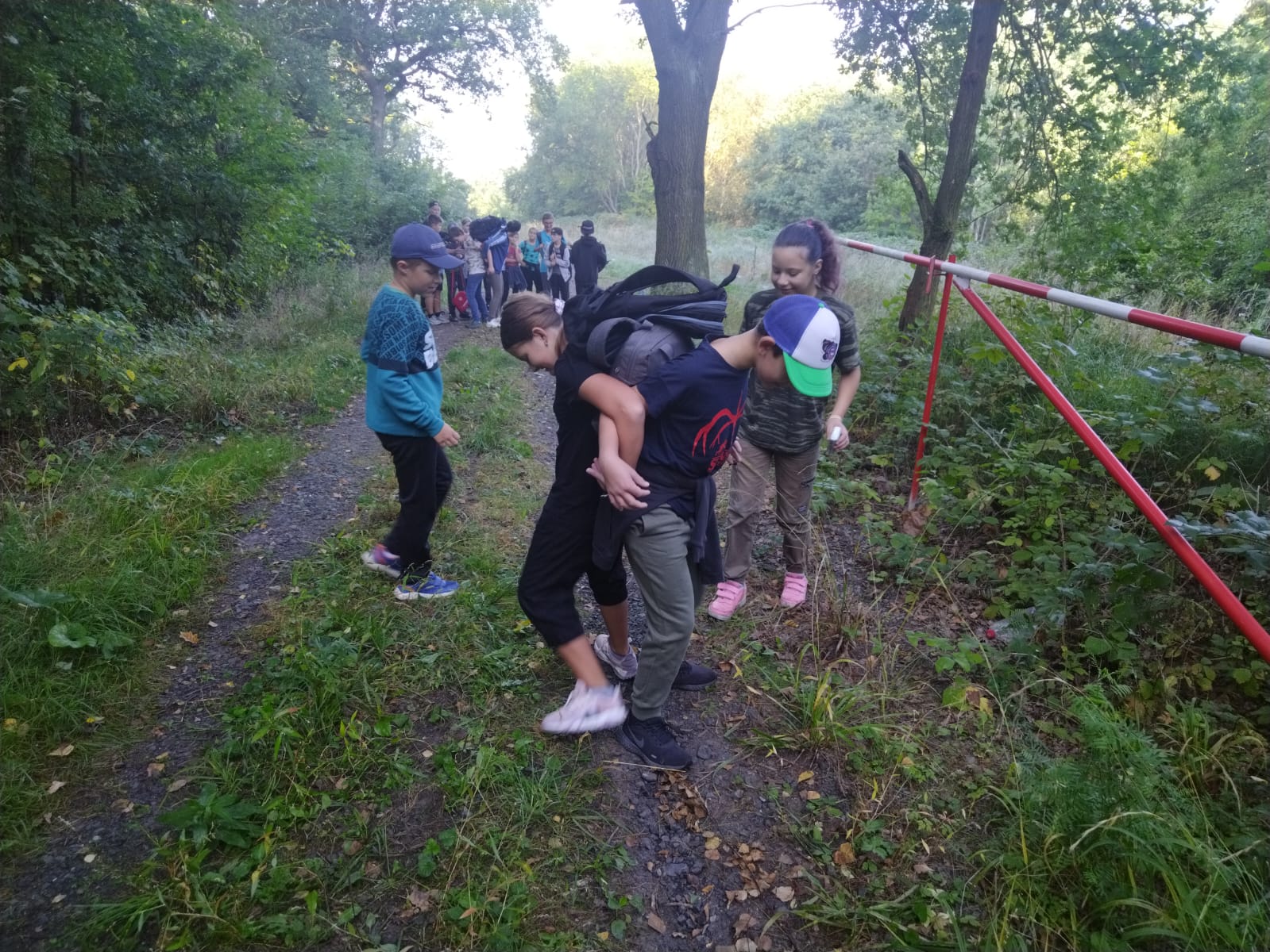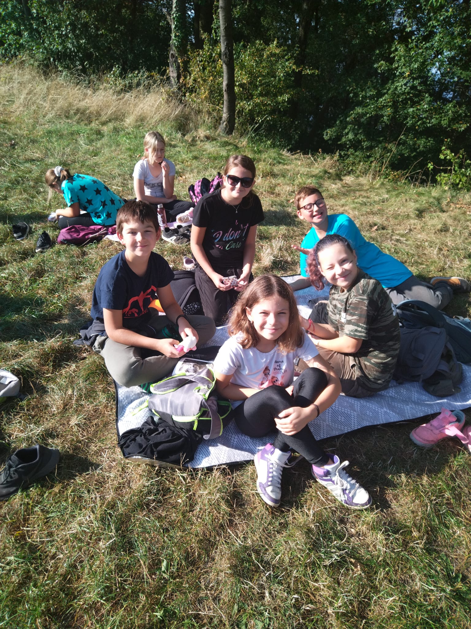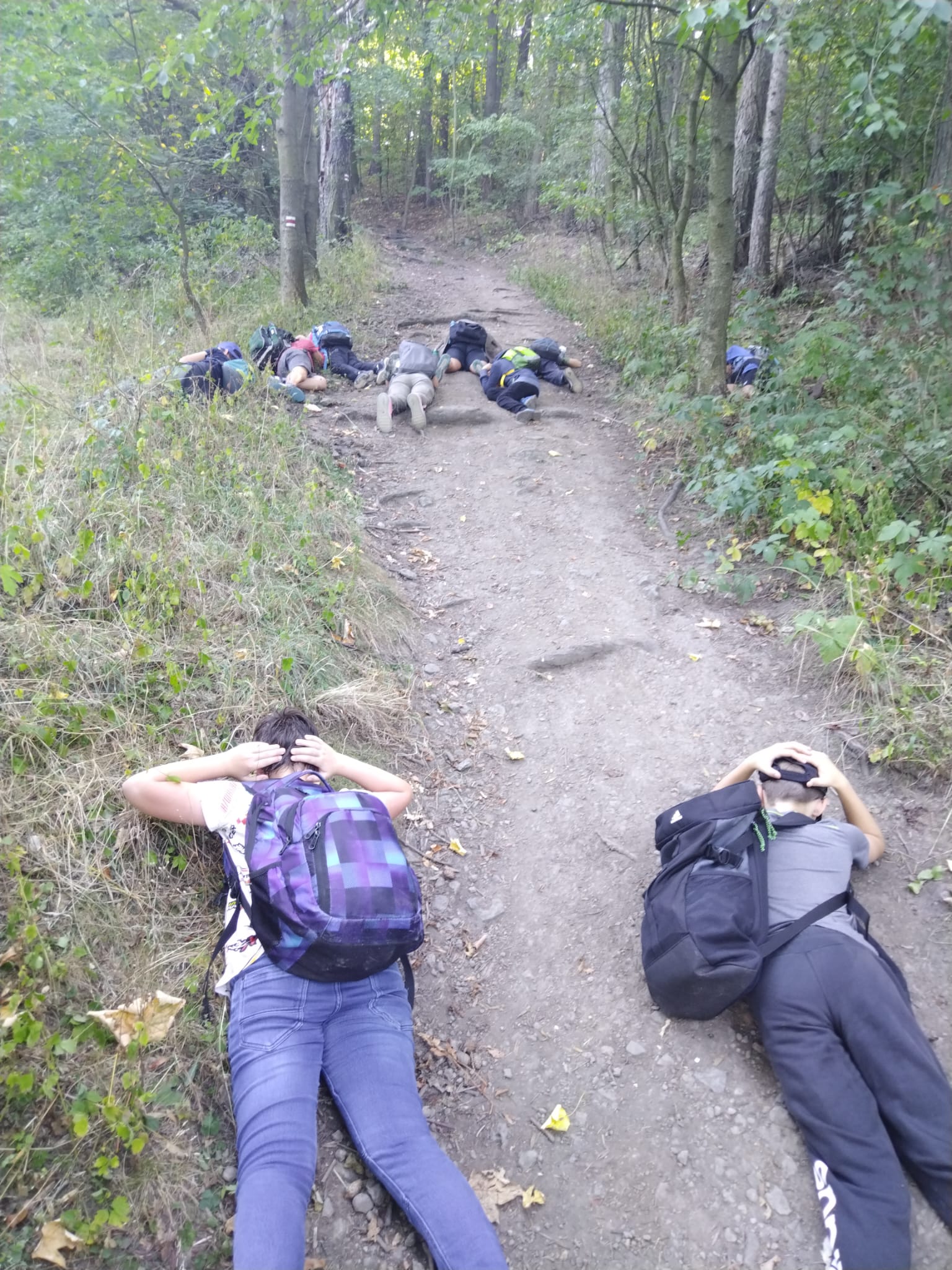 Seznámení se svojí novou třídou pojala paní učitelka celkem netradičně a třída 5.B se tento den proměnila ve vojenskou jednotku a žáci si zkusili bojový přesun na nedalekou rozhlednu Chlum.