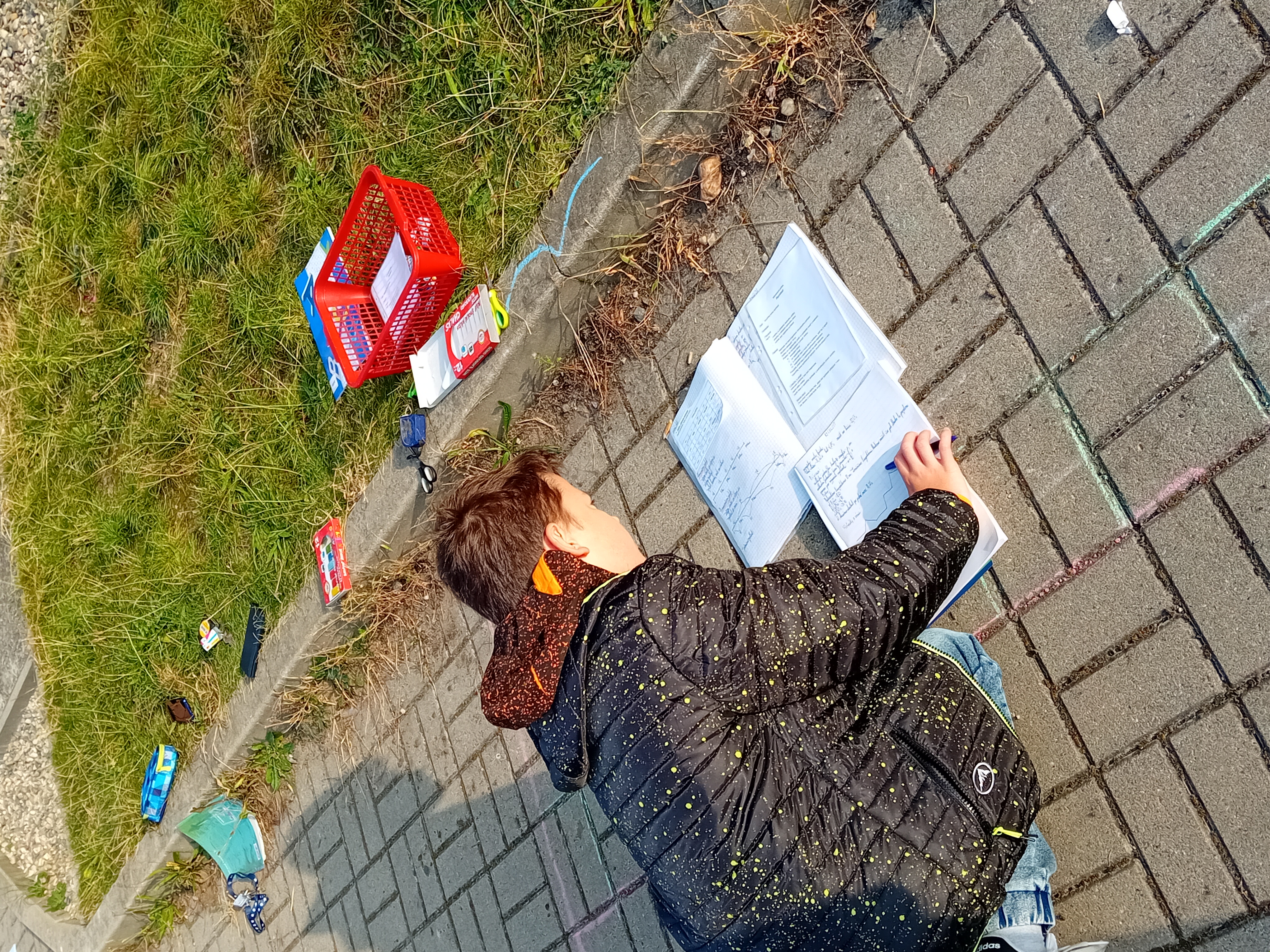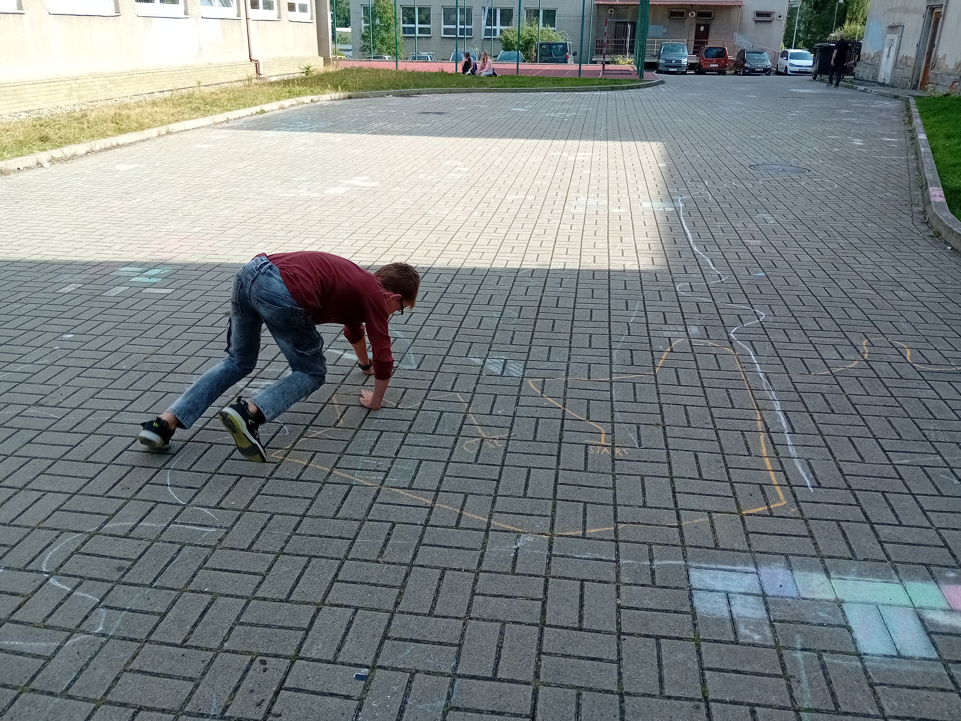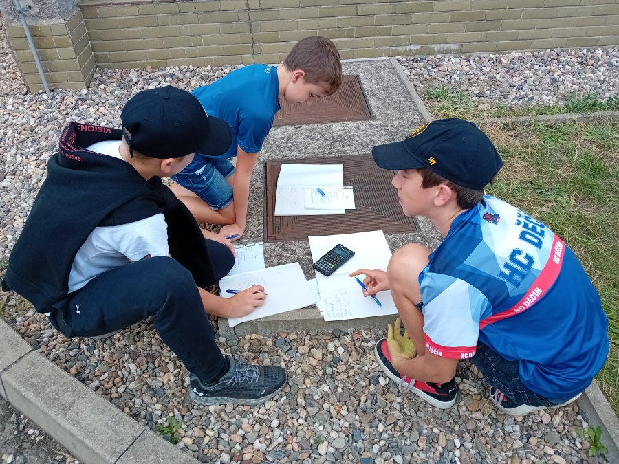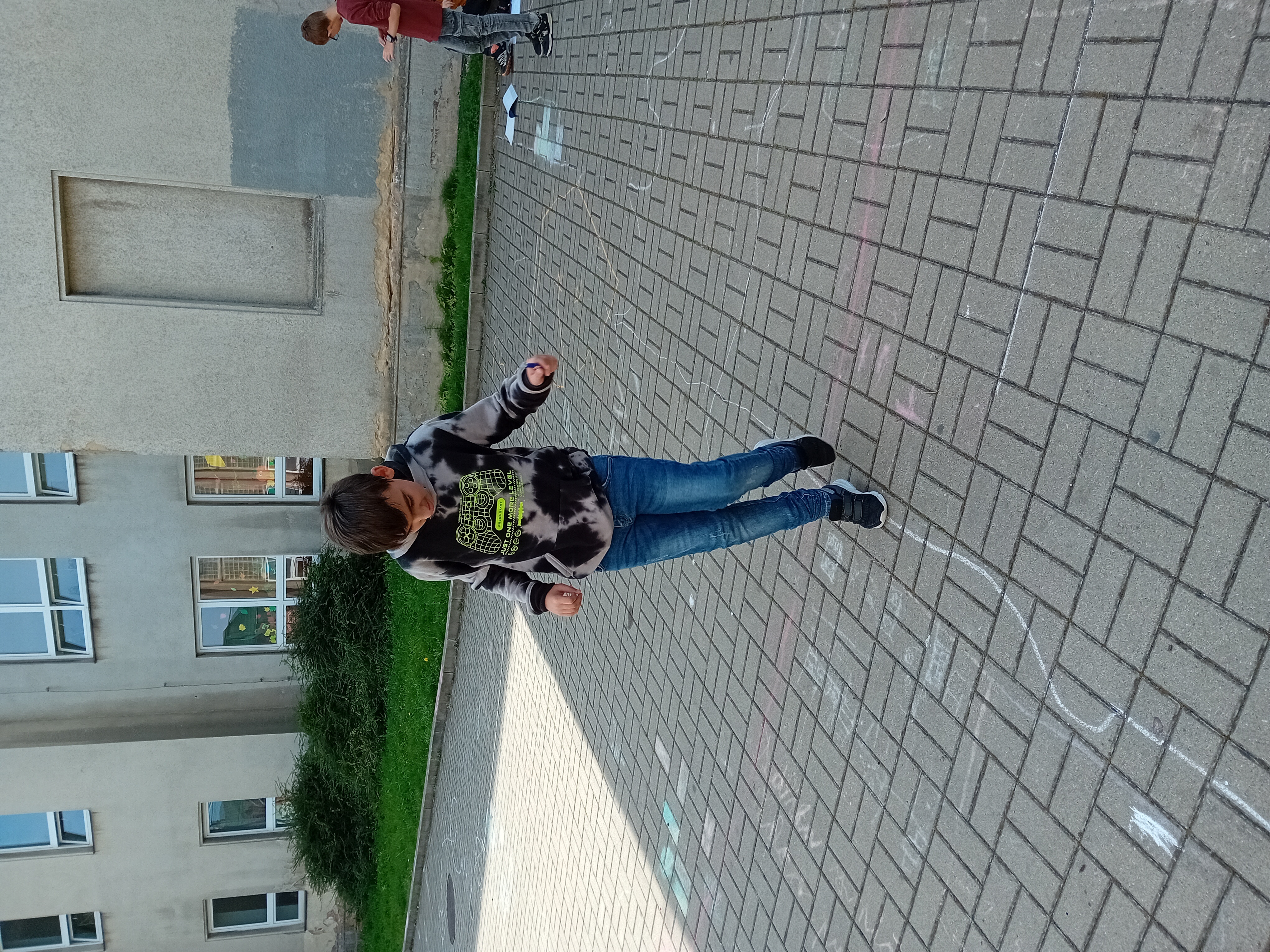 Ve dvojicích si žáci nakreslili křivočaré trajektorie a pak po nich zkoušeli chodit různými druhy chůze. Měřili čas a počítali svou rychlost. Prošli se normální chůzí, běhali co nejrychleji, ale také vymysleli různé kuriozity. Takže jsme viděli např. skákání po jedné noze, chůzi poslepu, pozadu, nebo kombinaci všeho dohromady.