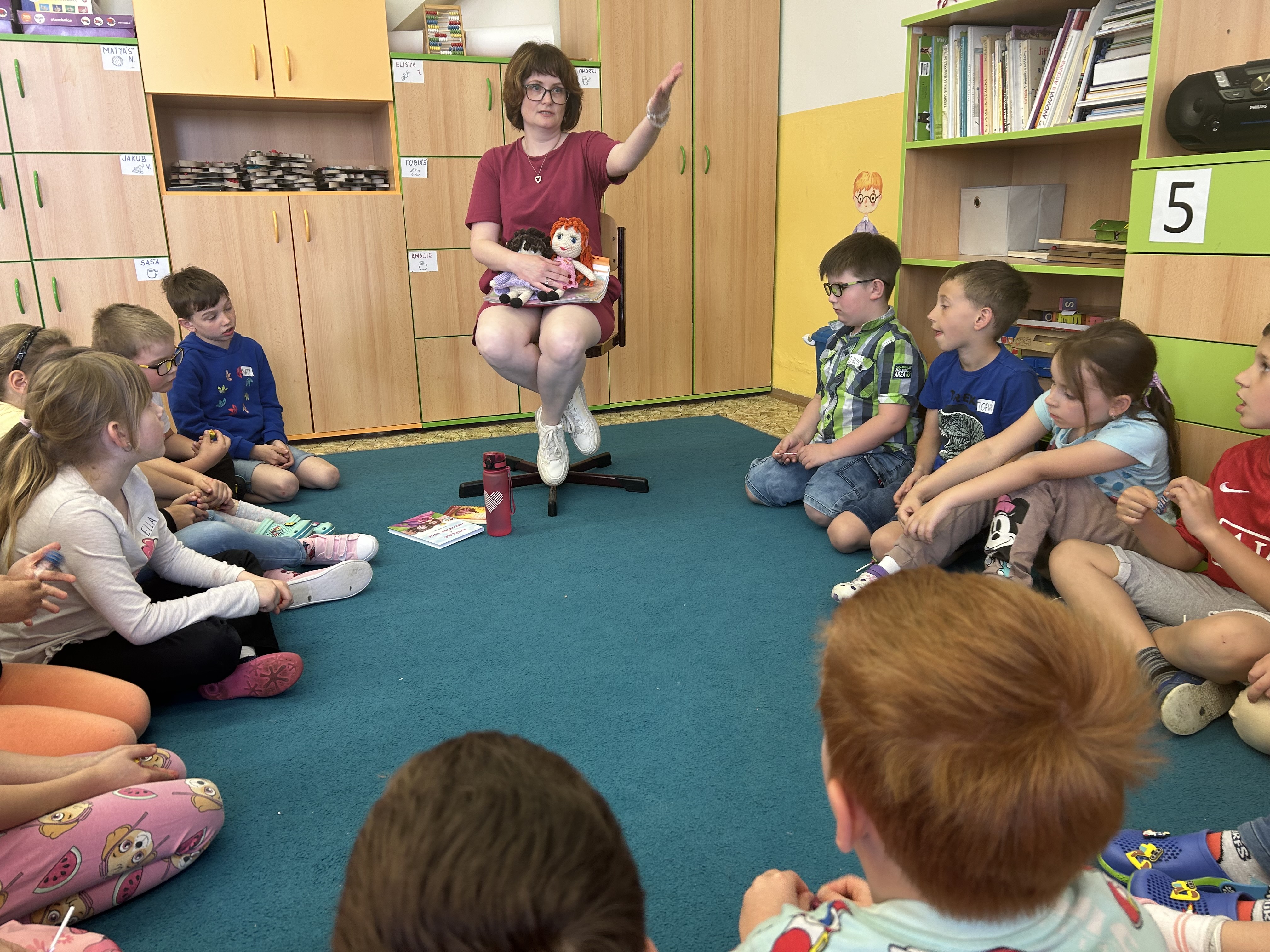 Celou besedu panovala ve třídě příjemná atmosféra a kniha se dětem moc líbila. Koncem května proběhne beseda a autorské čtení ve 2. třídách.
