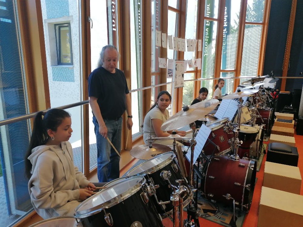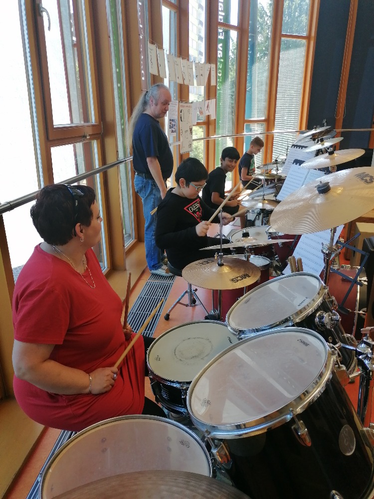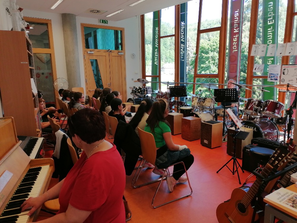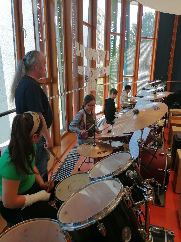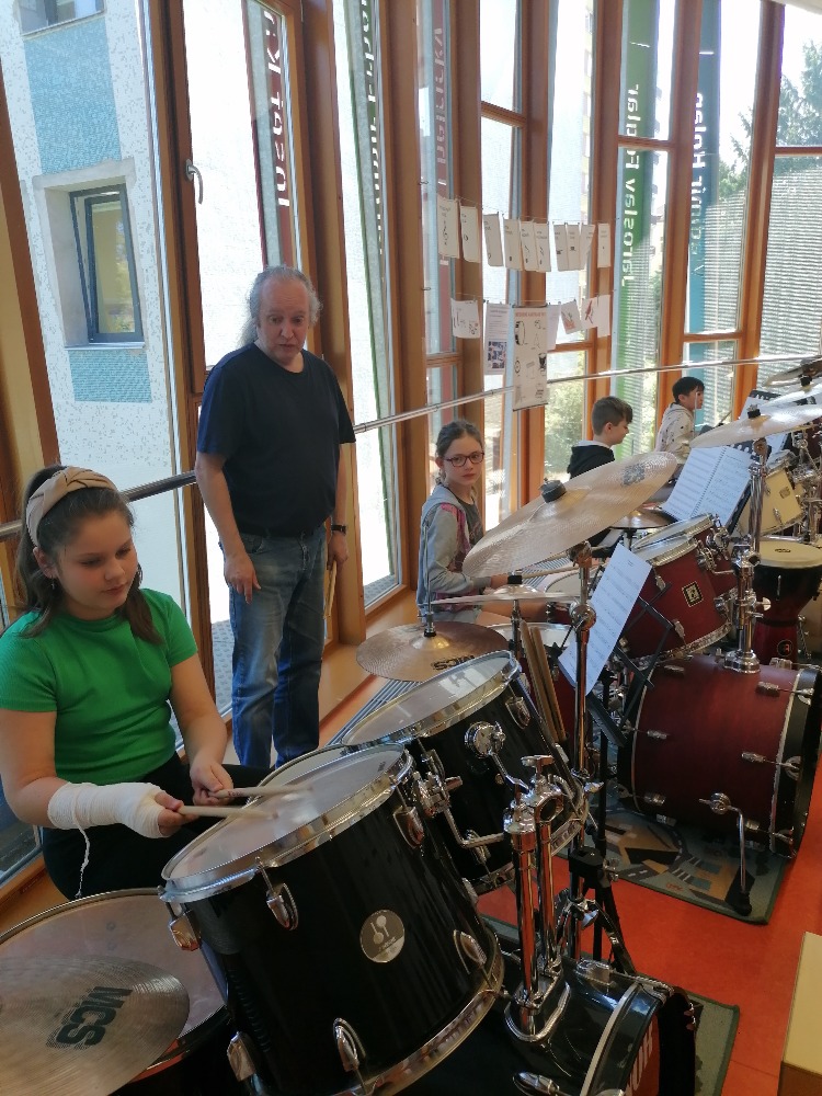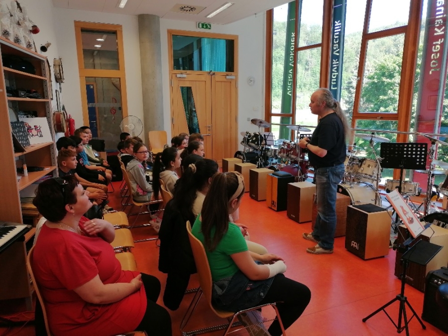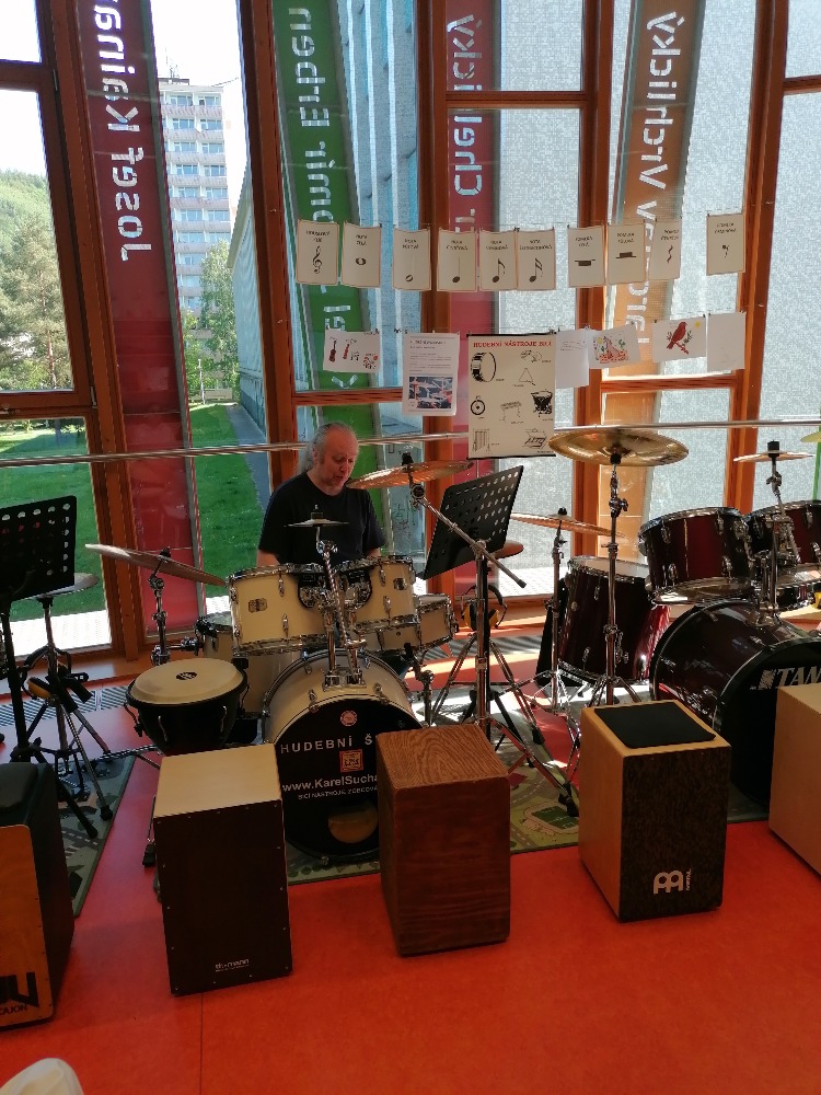 Nejdříve si děti zopakovaly hudební teorii, poté se seznámily se zajímavými informacemi ohledně bicích souprav akustických i elektrických, cajonů a dalších perkusí. Za doprovodu těchto nástrojů si také žáci zazpívali jednoduché dětské písně např. Skákal pes a Pec nám spadla.