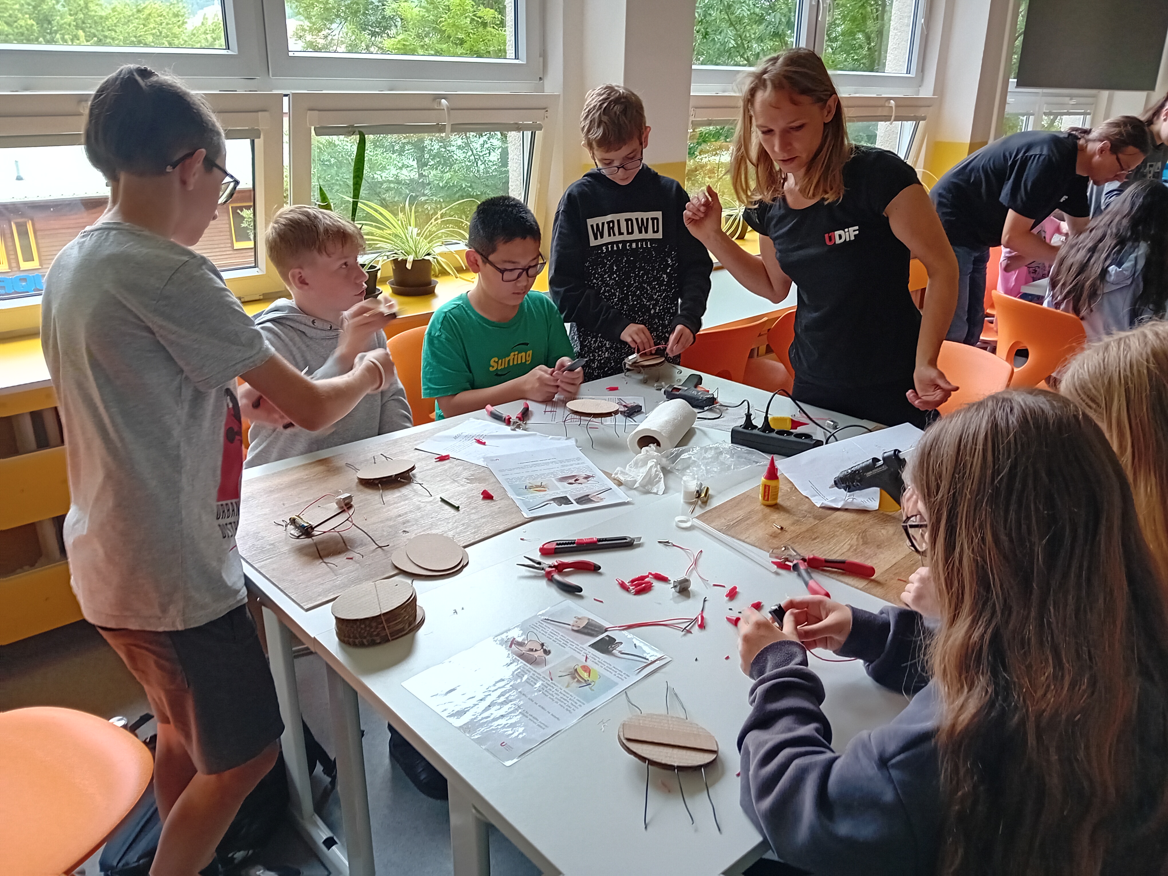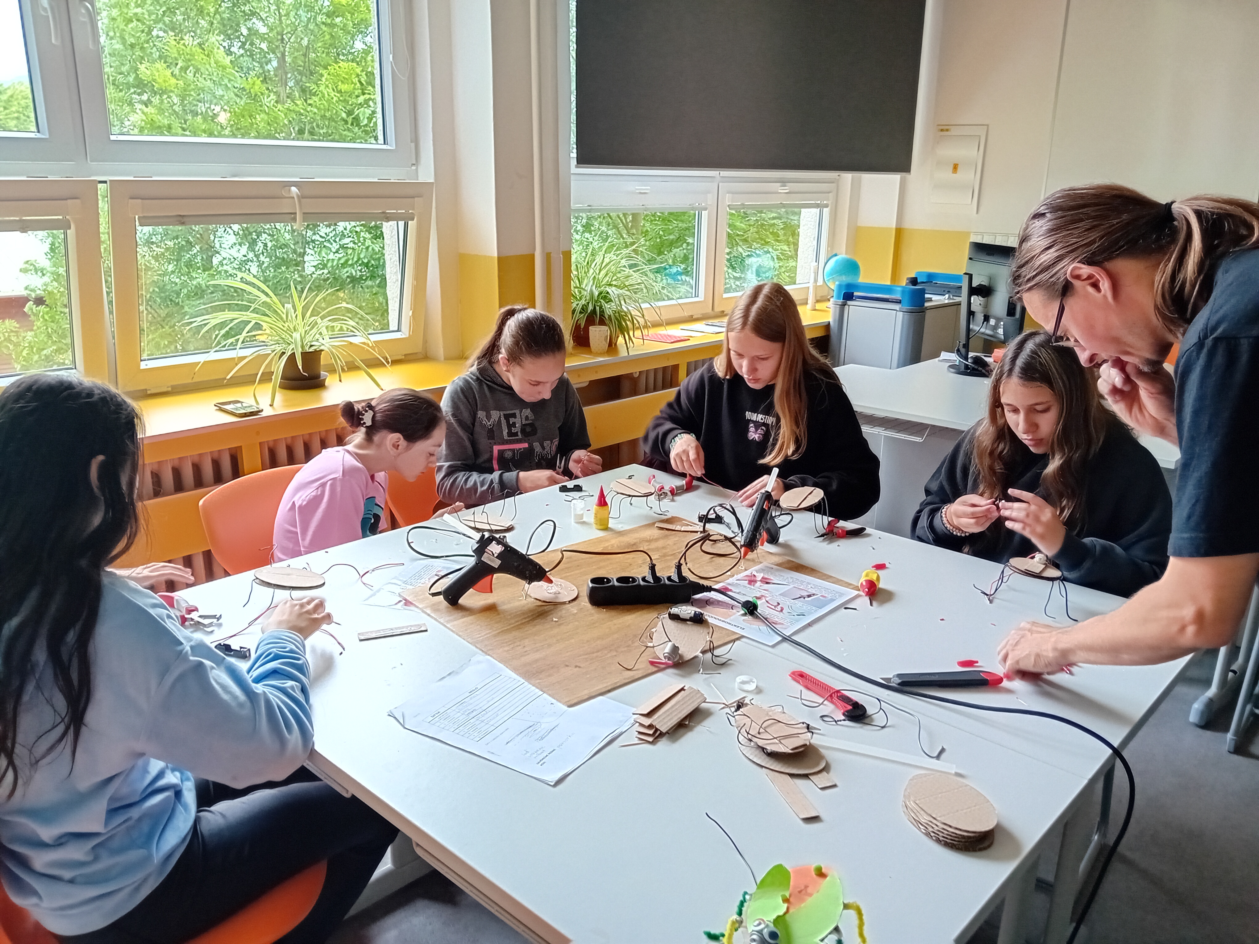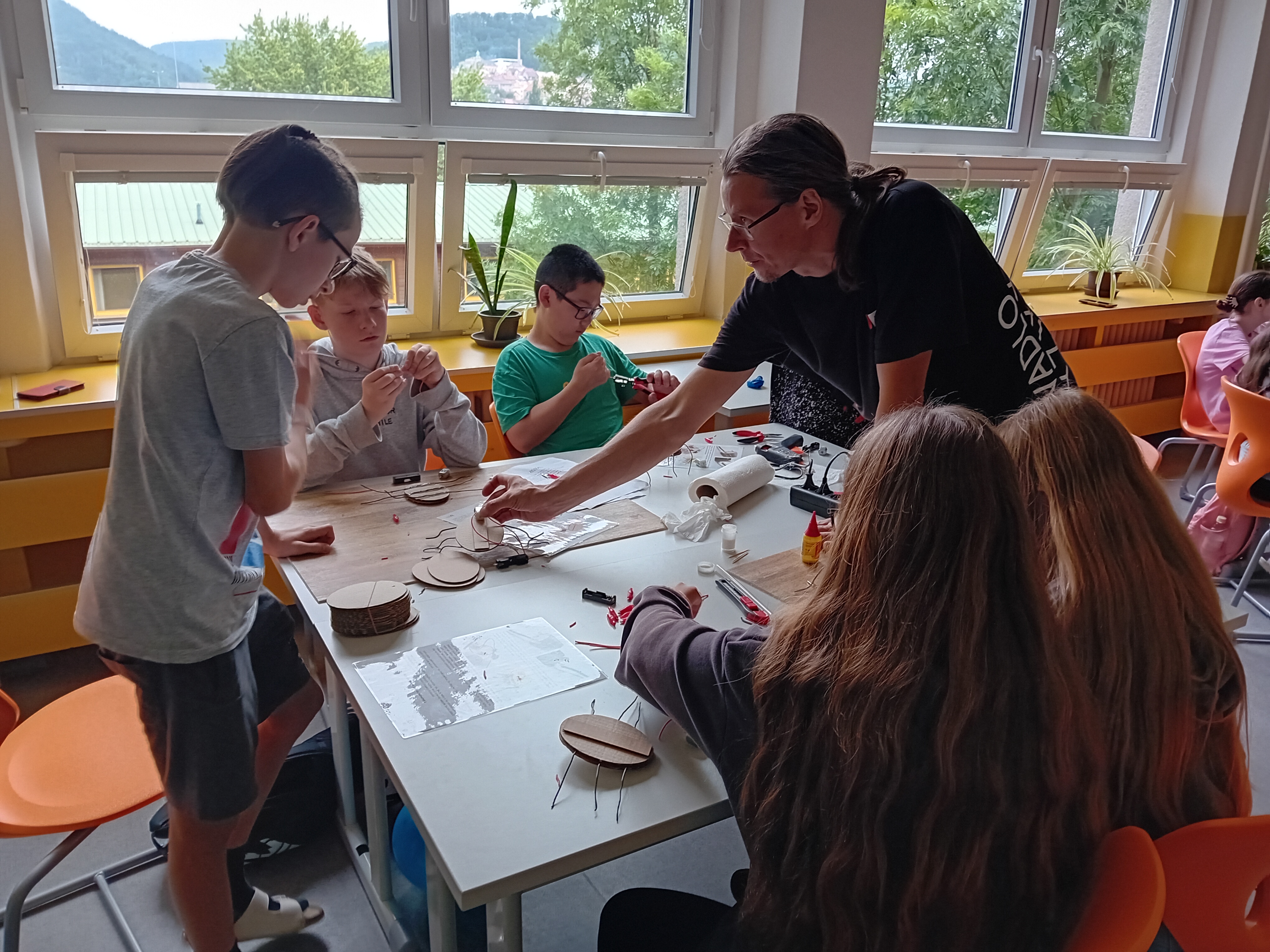 Ve druhé části programu si každý žák vyrobil a odnesl domů vlastního elektrobrouka. Brouk obsahuje baterii a hlavně vibrační motorek, díky kterému se může pohybovat. Nazdobení už bylo na fantazii každého.