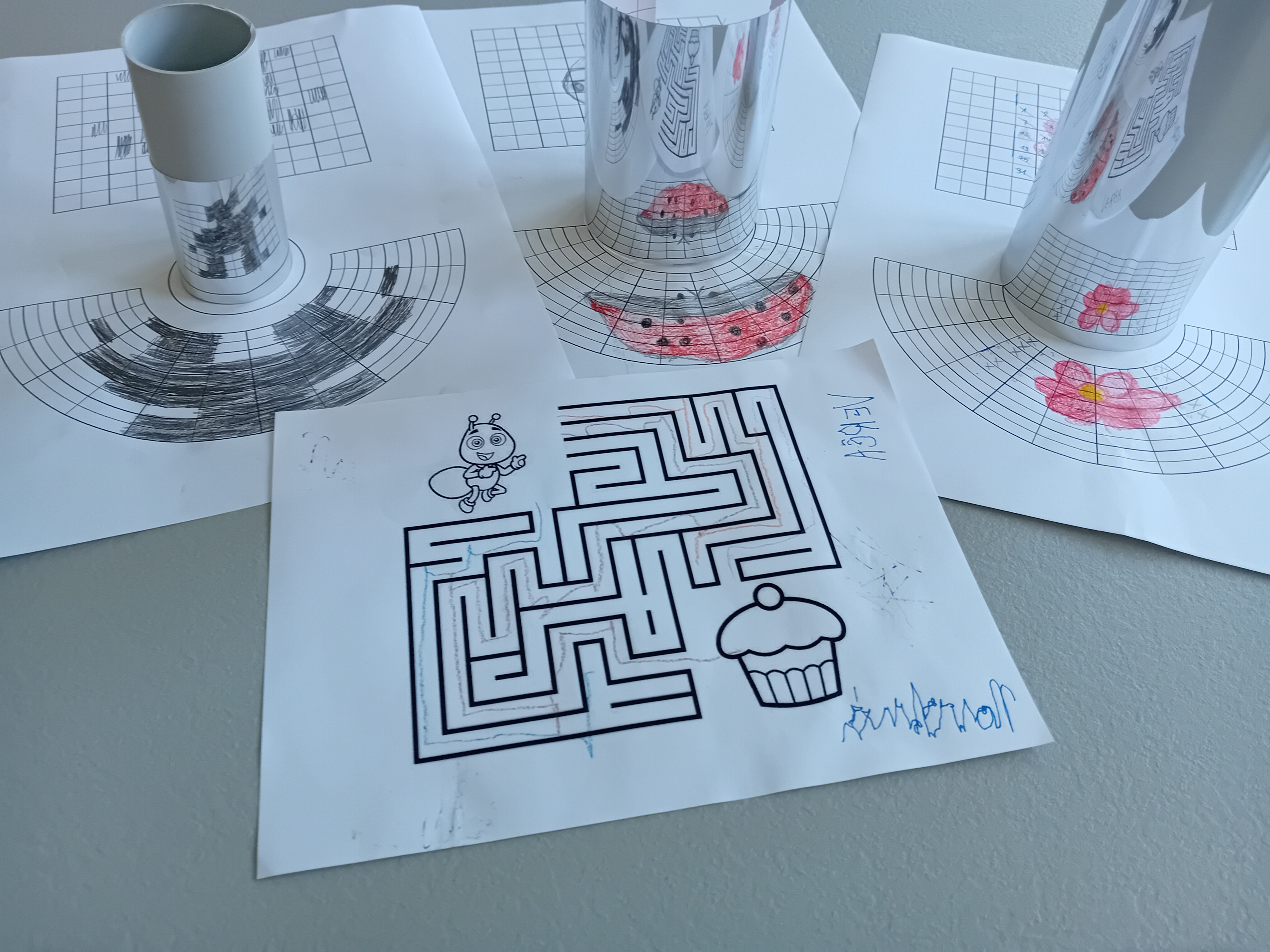 Přesvědčili jsme se o tom, že bloudit tužkou v papírovém bludišti tak, že koukám pouze do zrcadla je o dost obtížnější. A úplně jednoduché není pomocí zrcadla napsat ani svoje jméno nebo nakreslit hvězdičku 😊