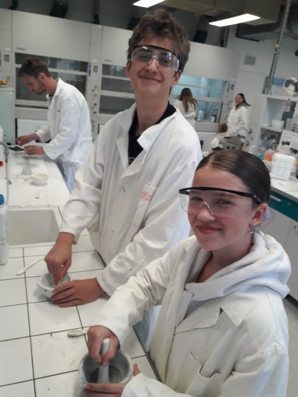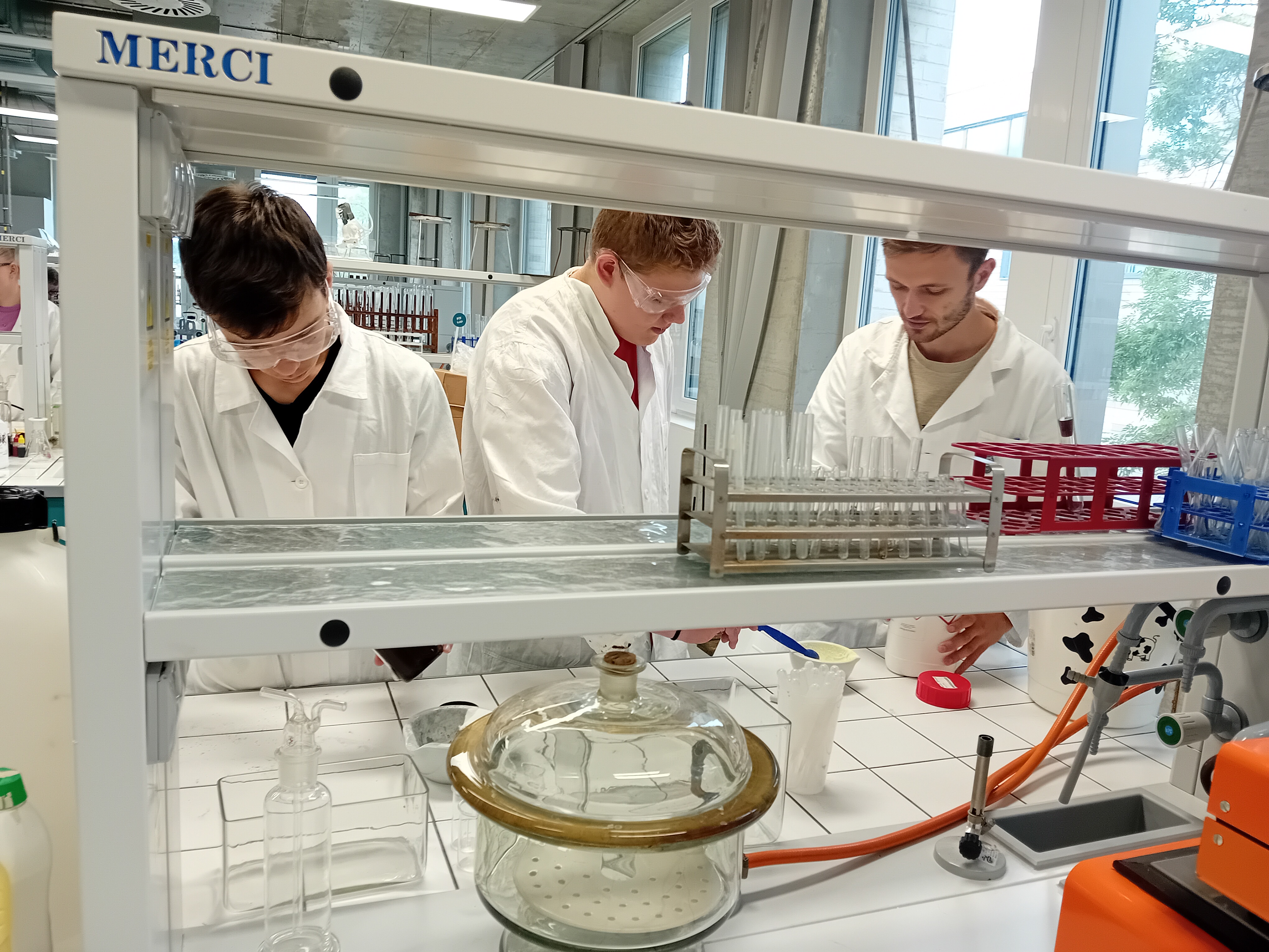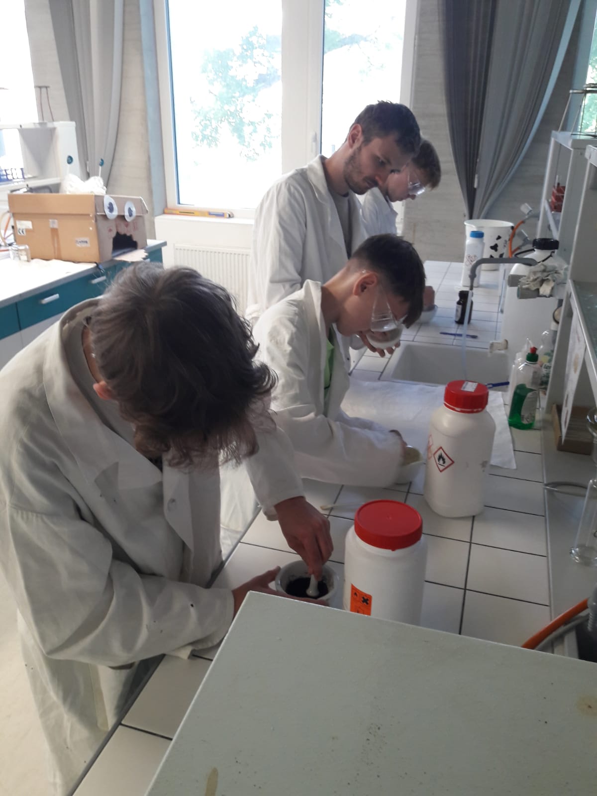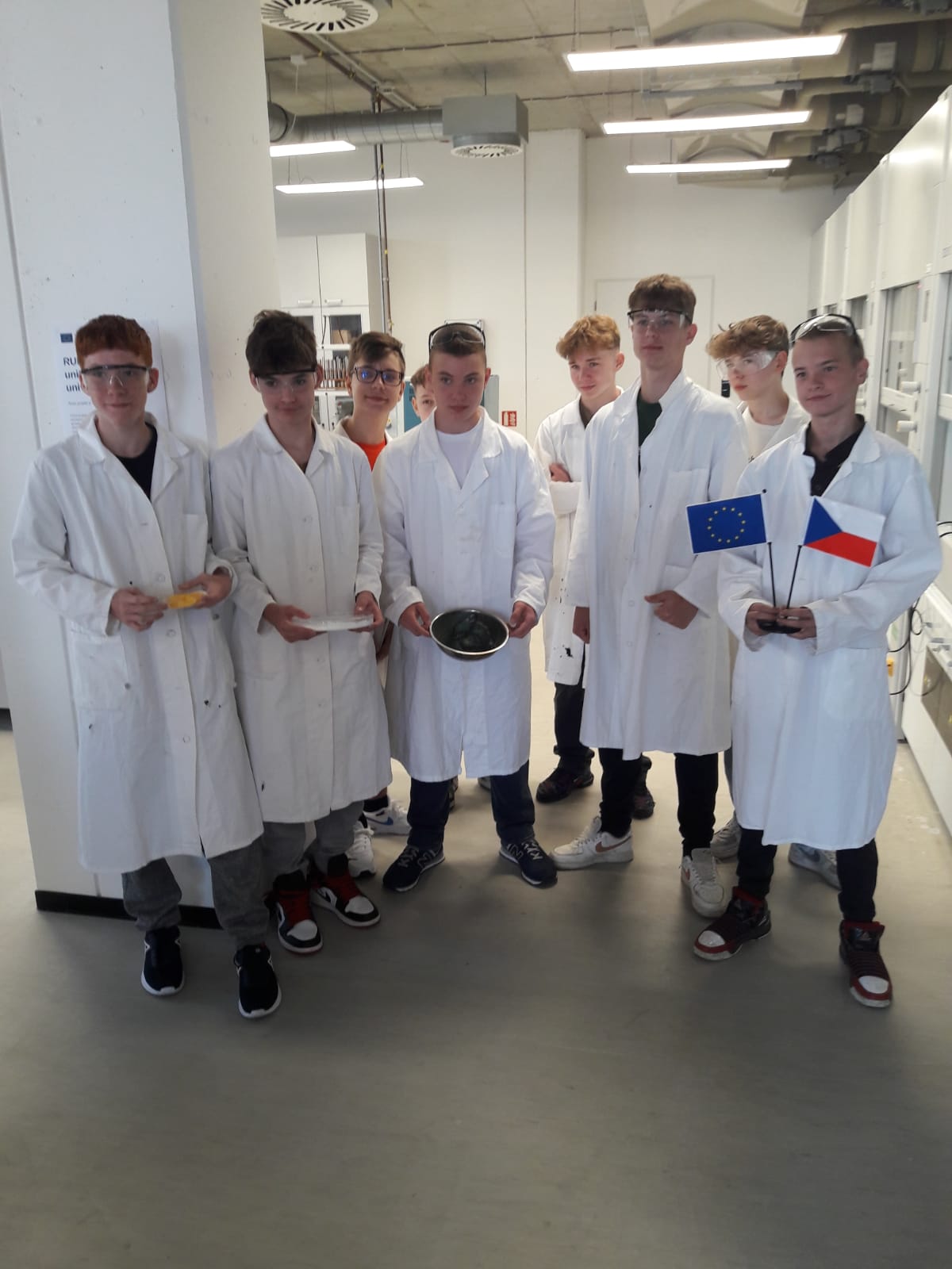 Osmáci se tedy znovu podívali do laboratoří na katedru chemie. Mohli sivyzkoušet několik pokusů. Přeměnu vody na zlato, výrobu faraonova hada, odpálení střelného prachu, kouzelnou modrou vodu i různé druhy krystalizace.