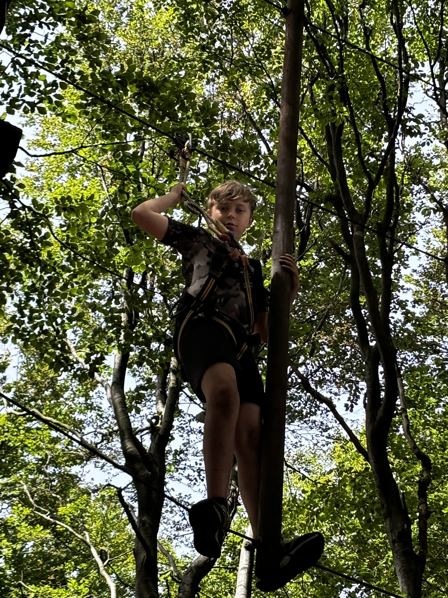V opravdu slunečném počasí jsme vystoupali až na vrchol k rozhledně Jedlová. Po krátkém odpočinku si první část výletu všichni užili v lanovém parku. Zde děti předvedly nejen svoji velkou odvahu, ale i obratnost na jednotlivých překážkách. Z lanového parku jsme se přemístili k obří houpačce. I tady to bylo především o odvaze. Nakonec někteří na houpačku šli znovu, a kdyby byl čas, šli by ještě tak desetkrát...