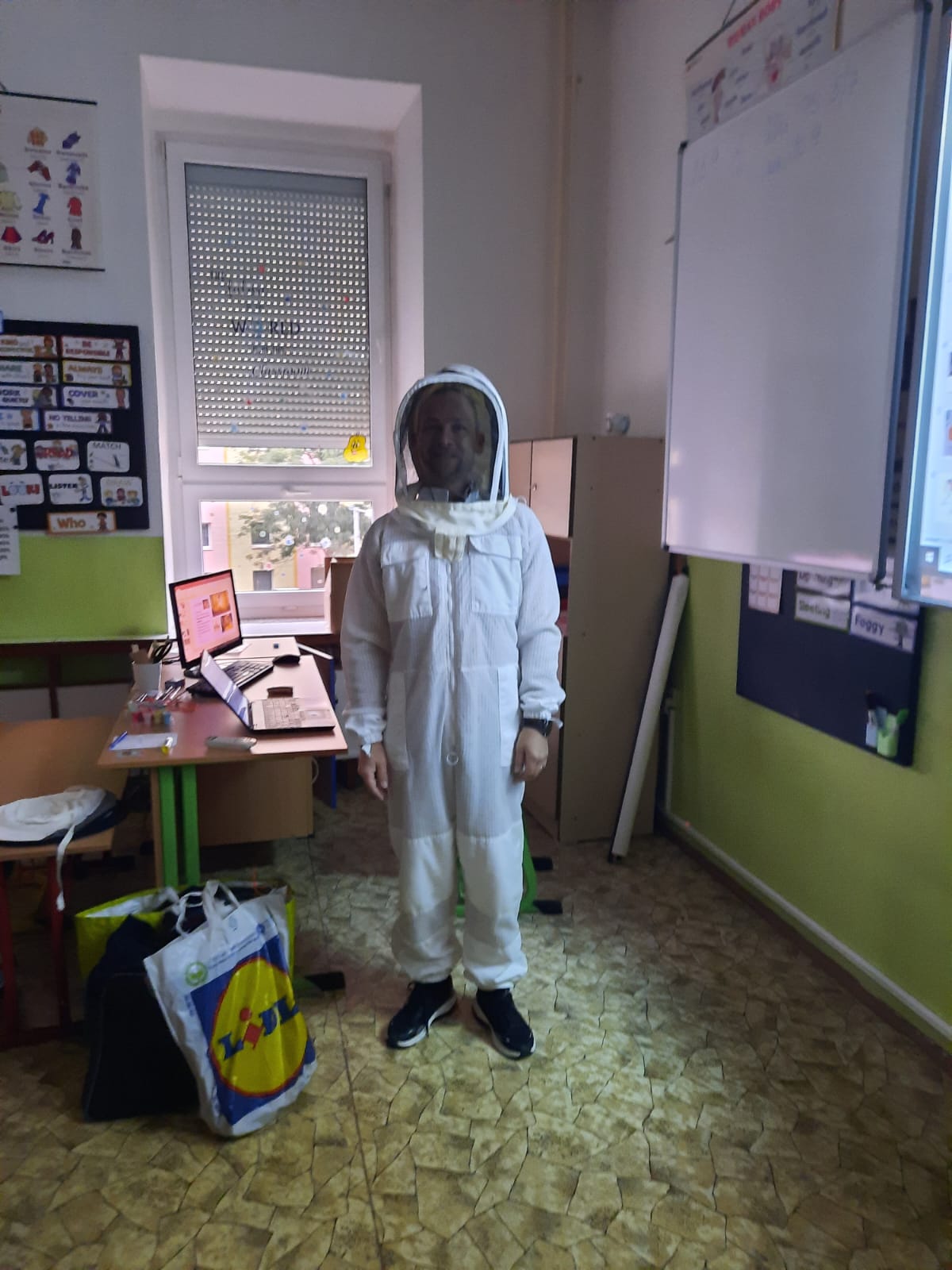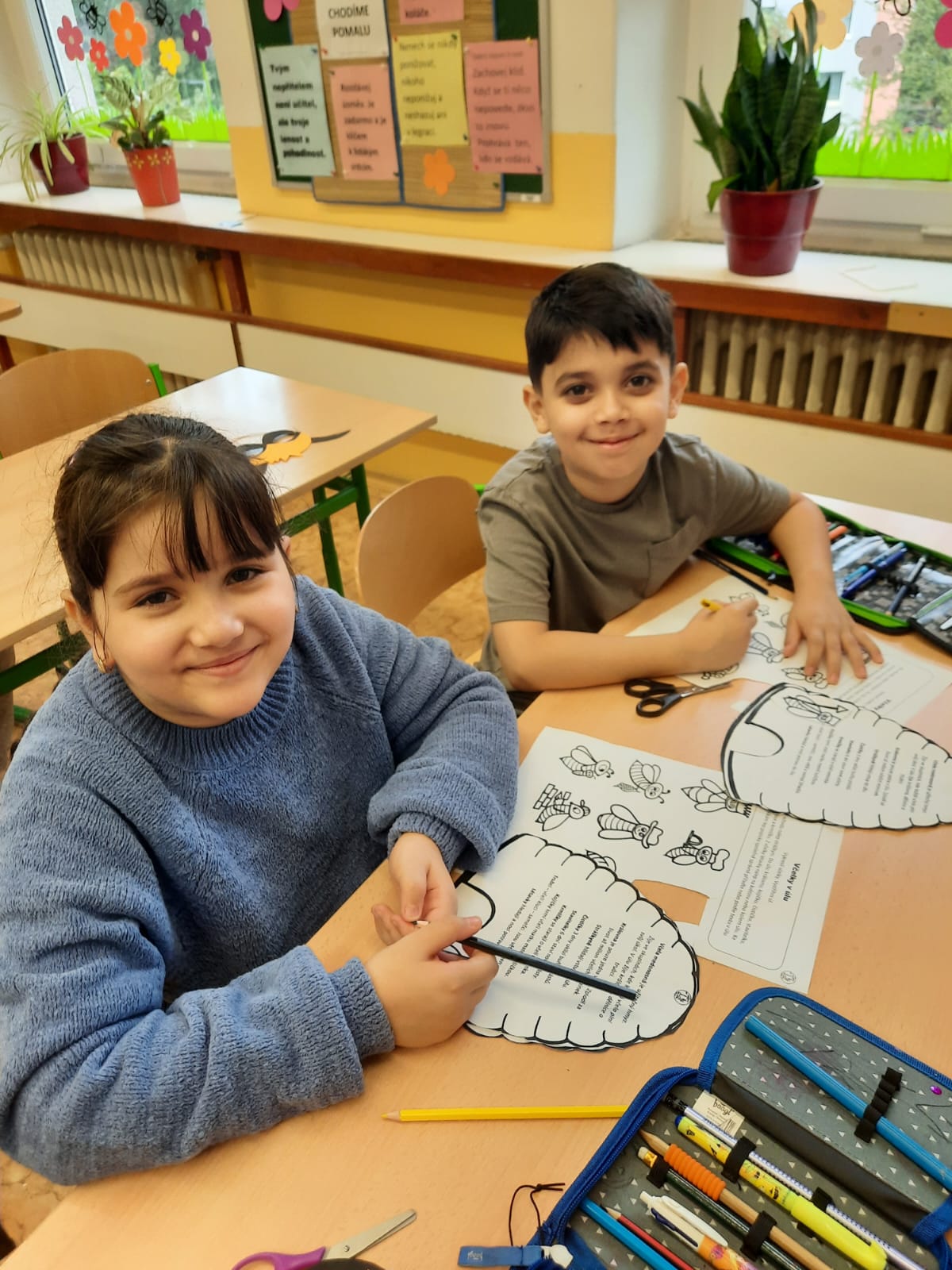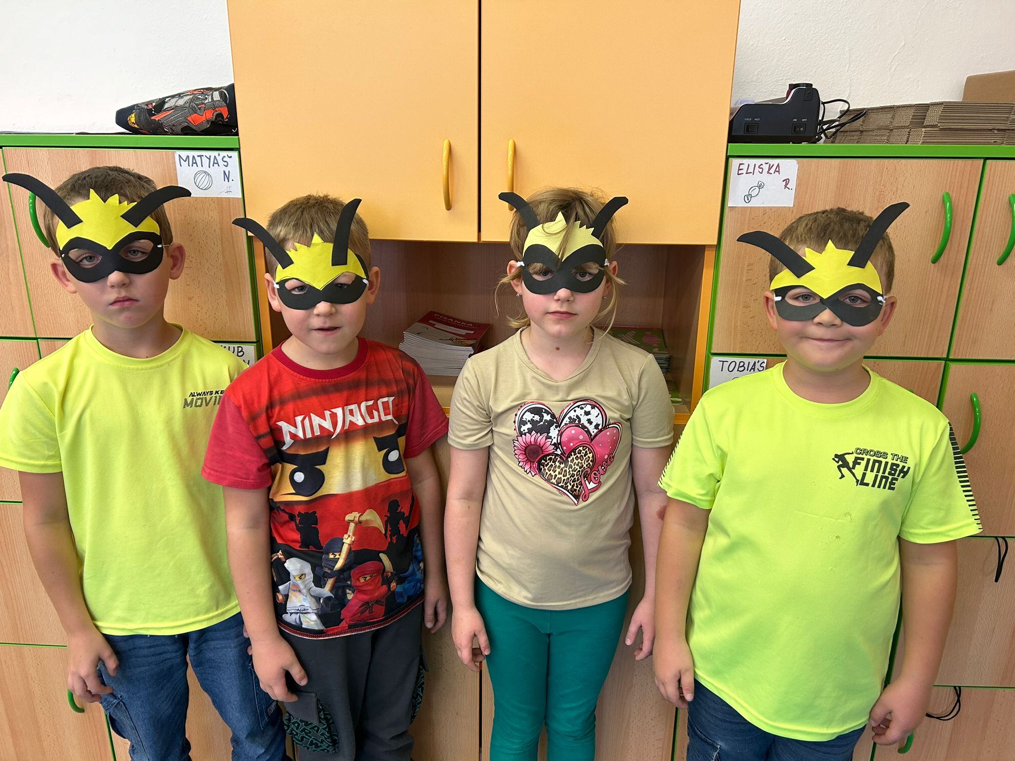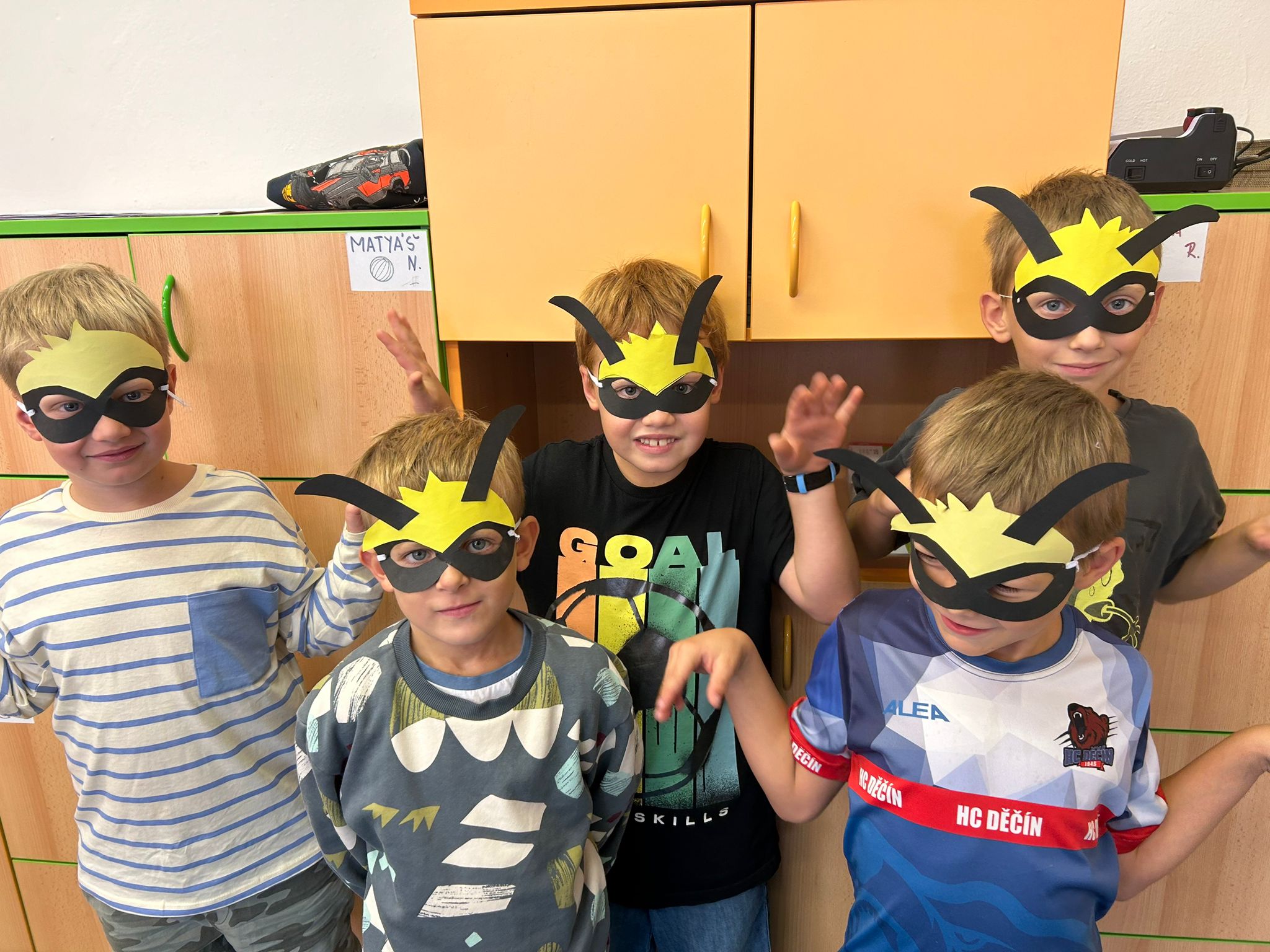 Do tříd jsme na přednášku pozvali pana Janoucha z Jílového, který se věnuje včelařině. Předem jsme si vyrobili masku včelky a přivítali jsme včelaře jako třída plná včeliček. Pan Janouch nám na oplátku vyprávěl o životě včely a o jejím významu pro člověka.