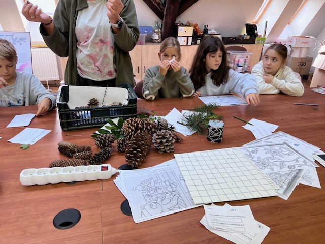V zahradách zemědělské školy jich mají opravdu mnoho, listnatých i jehličnatých a děti se s nimi hravou formou seznámily. Prohlédly si, jak vypadají listy, kůra, jehličí nebo plody a šišky. Slyšely názvy stromů nebo keřů, které jim nebyly úplně známé nebo, že plody javoru jsou nažky.