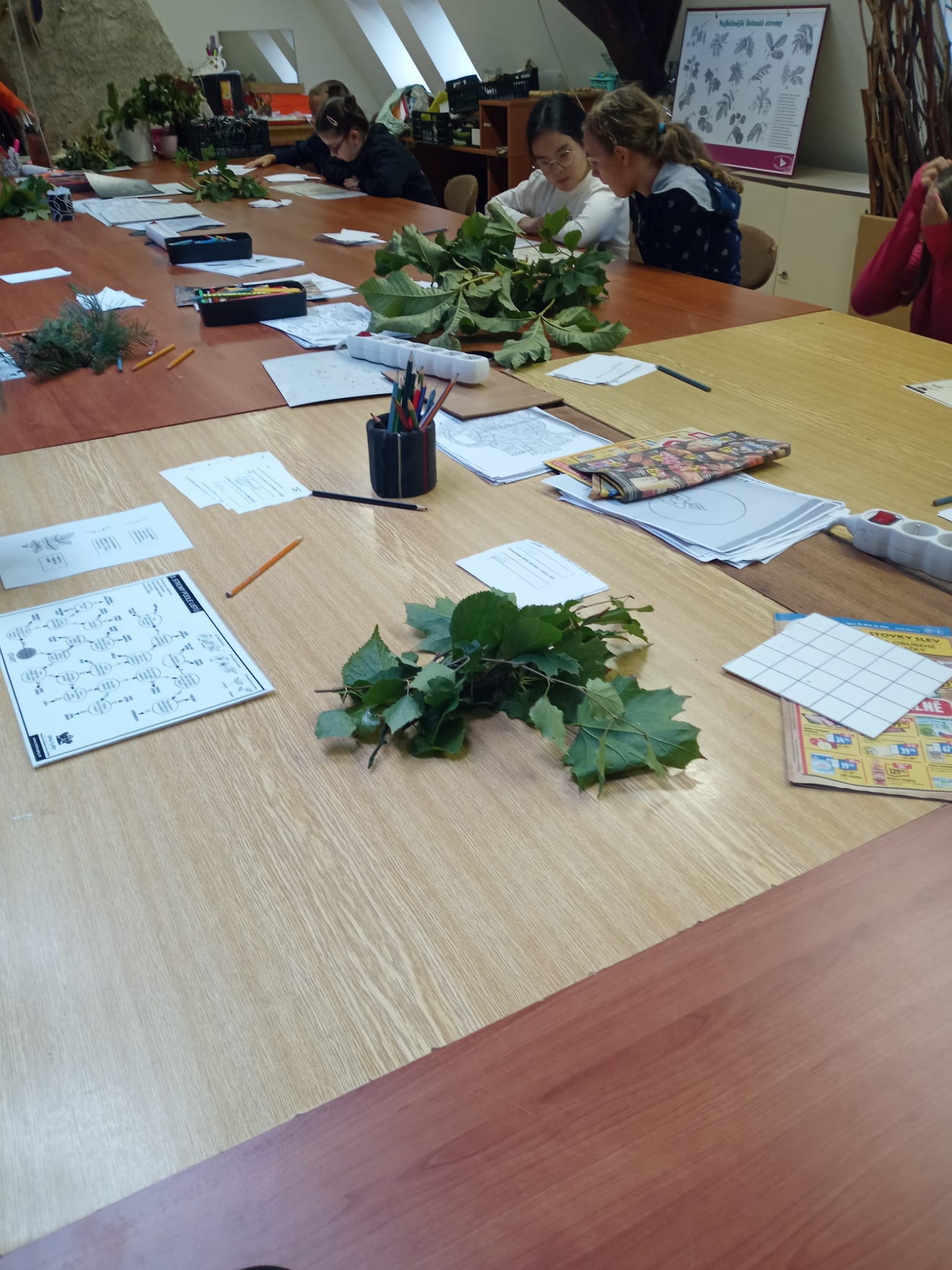 Začátek výuky odstartoval venku, žáci se seznamovali se stromy a keři, např. si zkusili frotáž kůry stromů. Druhá část výuky probíhala v učebně, kde si žáci zahráli hry na poznávání stromů a keřů podle listů, řešili rébusy apod. Nakonec jsme se rozloučili hrou „Zeptej se svého koně.“