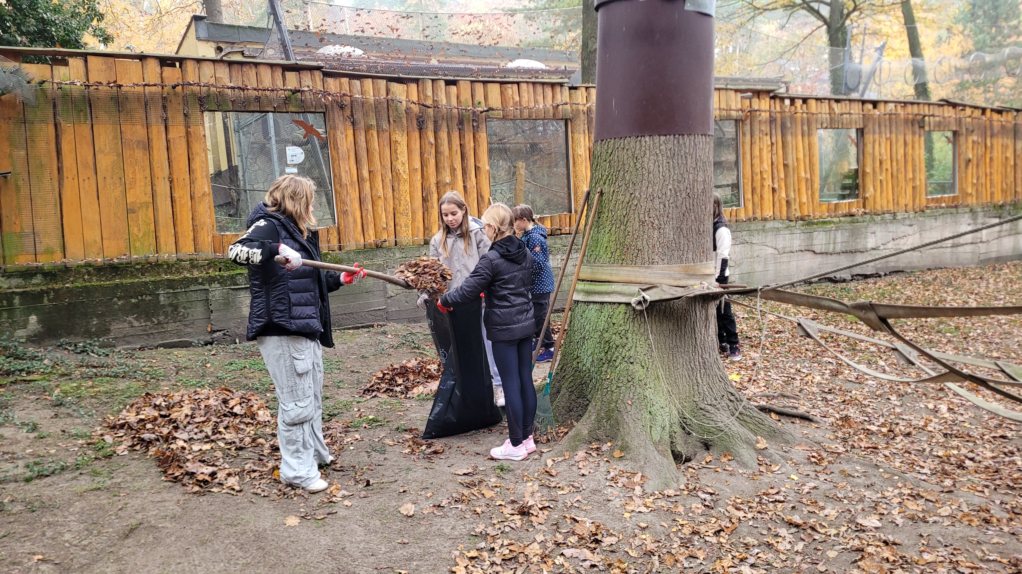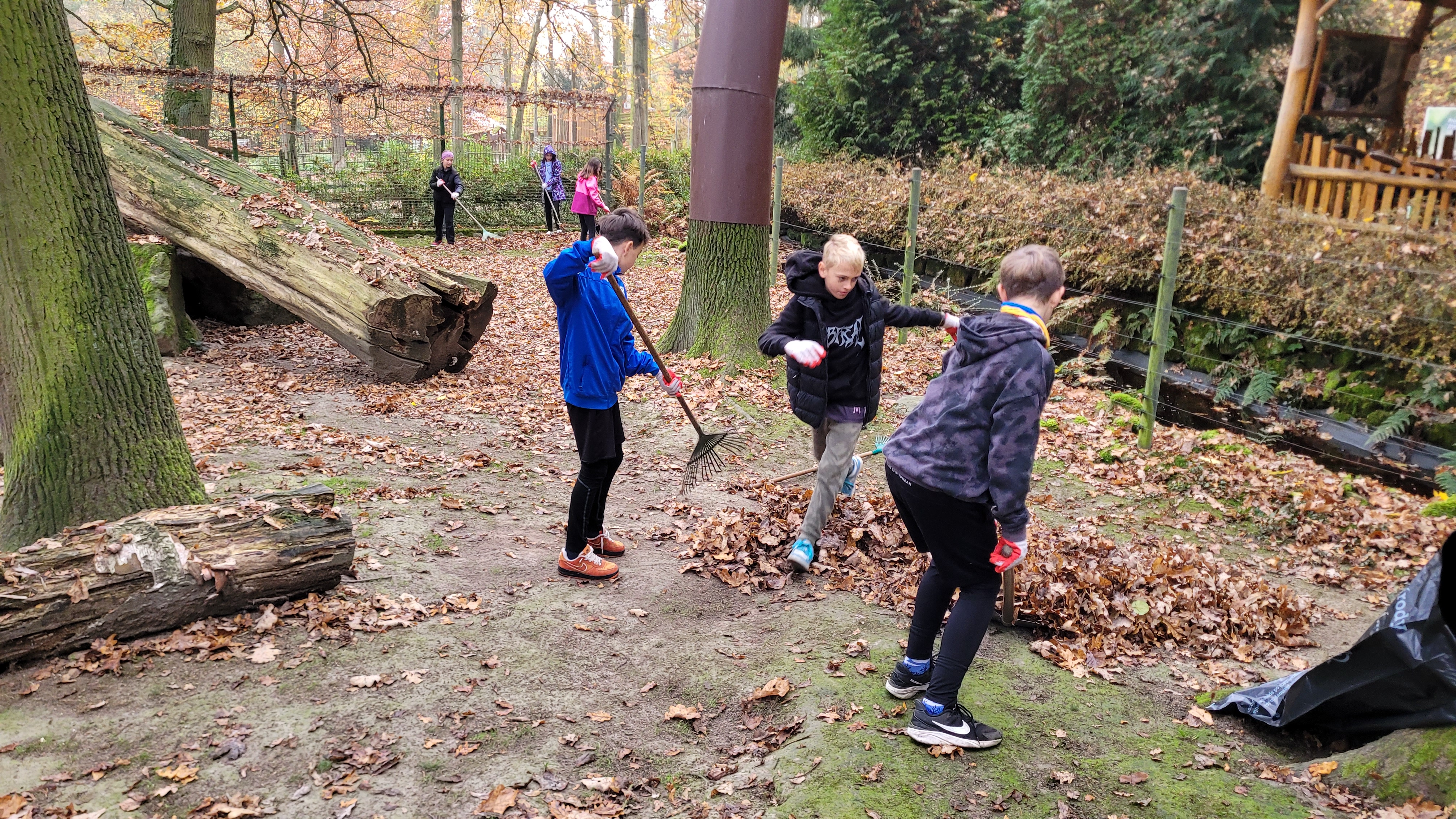 Žáci tak pomohli s podzimním úklidem areálu zoo. Třídě byl konkrétně přidělen výběh makaků chocholatých. Všichni žáci se chopili hrábí, lopat, pytlů a koleček a za necelé dvě hodiny byl celý výběh uklizený. Za dobře odvedenou práci děti dostaly ještě navíc volný lístek na další návštěvu zoo.