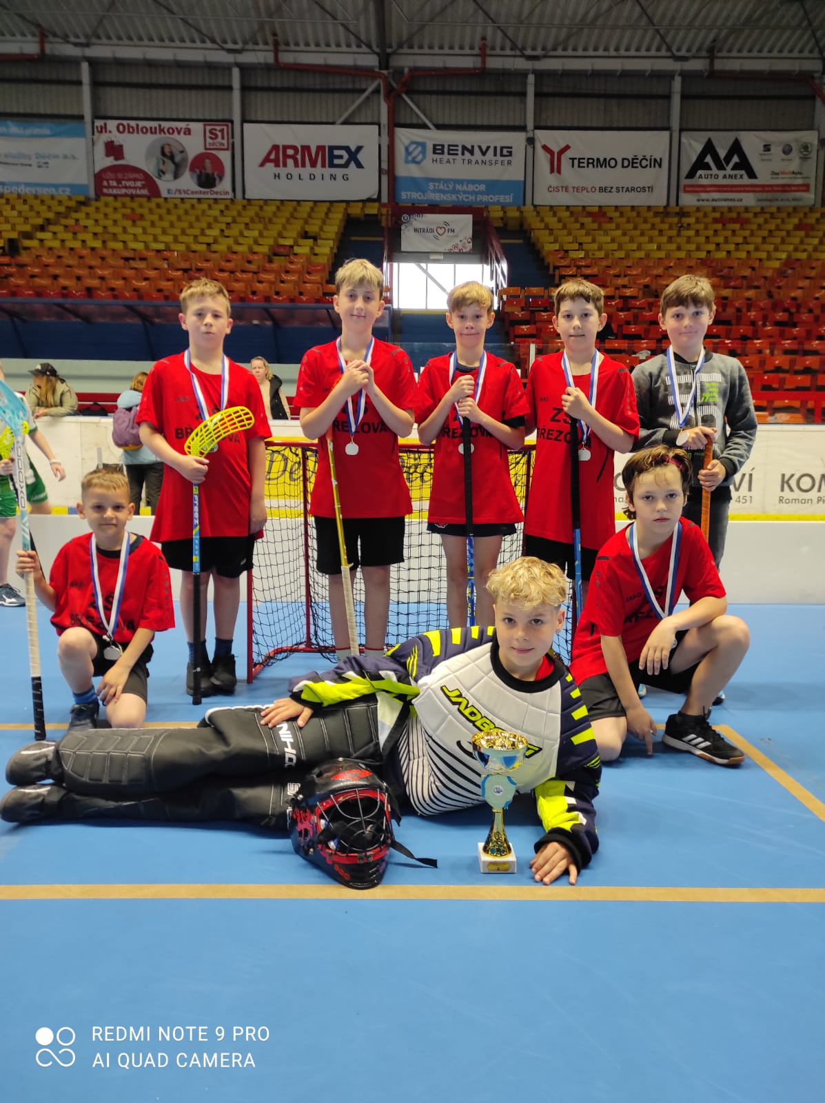 V pondělí sváděli bitvy mladší kluci ( 3. - 5. třída ) a vedli si výborně. Po třech drtivých výhrách postoupili přímo do semifinále, kde si naprosto bez problémů poradili po výsledku 8:1 se ZŠ Dr. Mir. Tyrše. Ve finále kluky čekal tradiční protivník v bojích o nejcennější kovy – ZŠ Kamenická. I přes jasné přestřílení soupeře, herní dominanci a tři neuznané góly kluci živili naději na vítězství. Se závěrečným klaksonem jsme vyrovnali na 2:2 – bohužel ani tato branka nám nebyla uznána, a tak jsme se museli spokojit s krásným druhým místem.