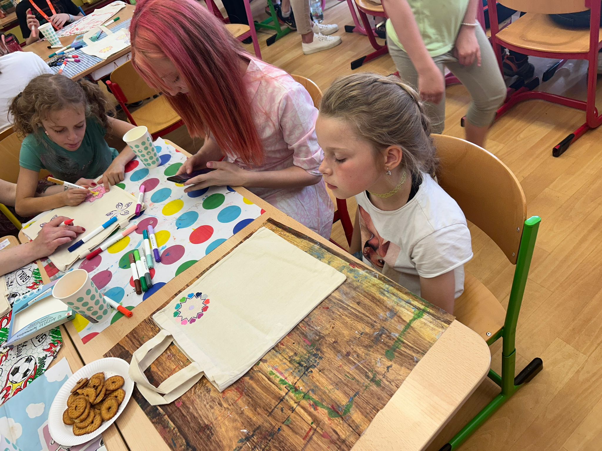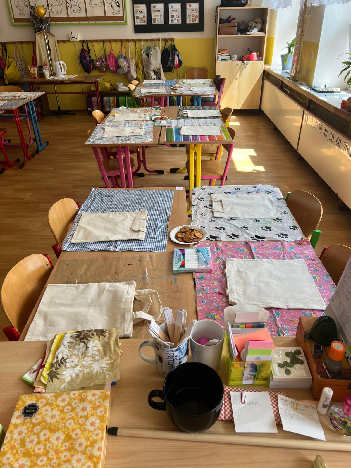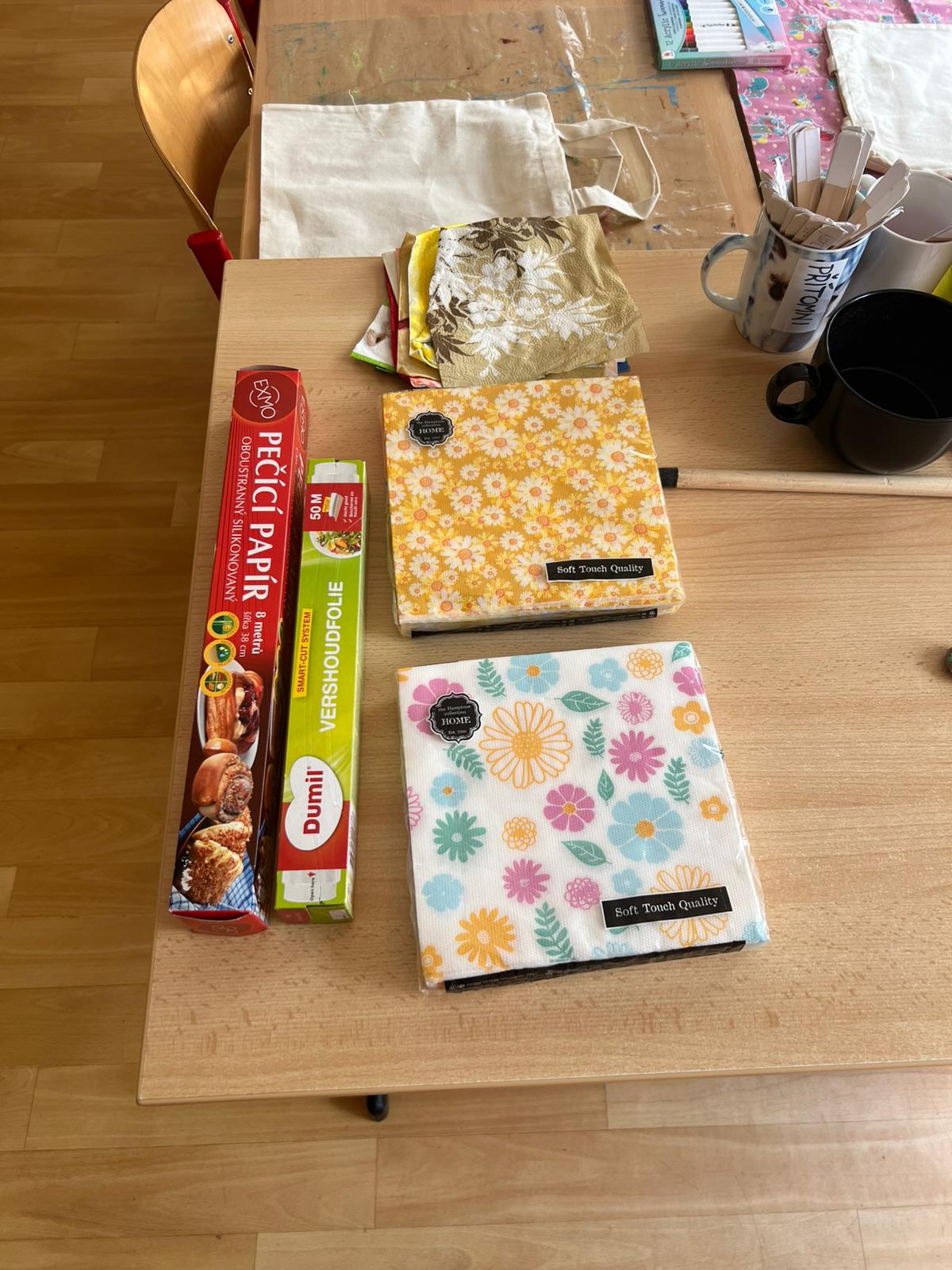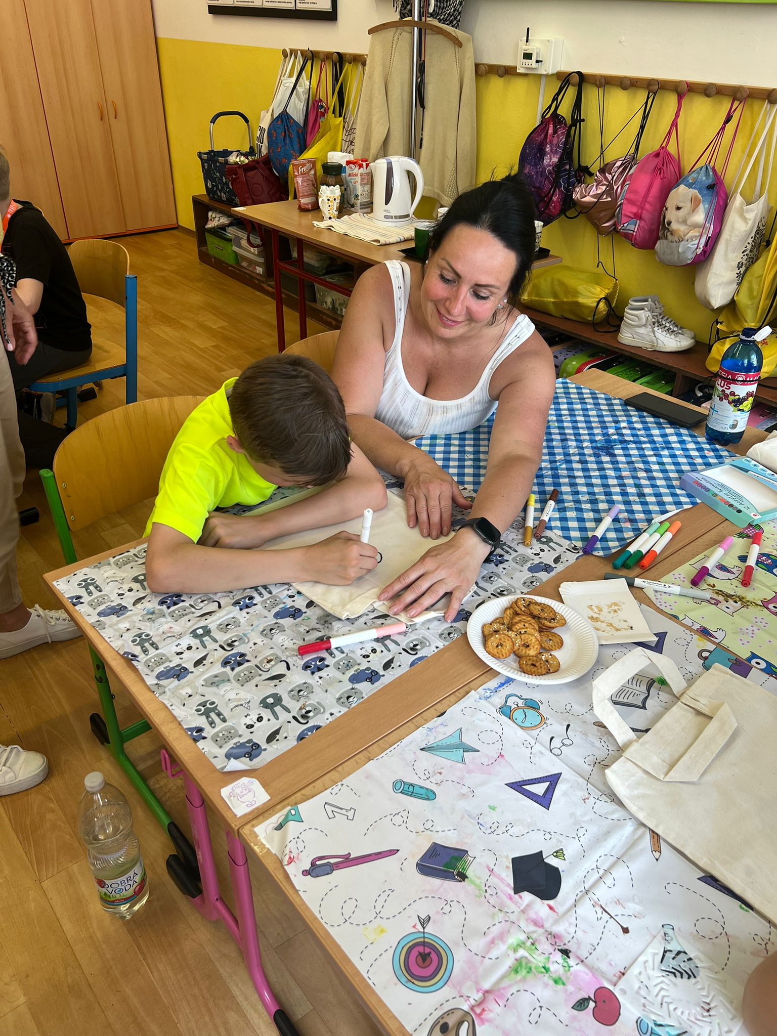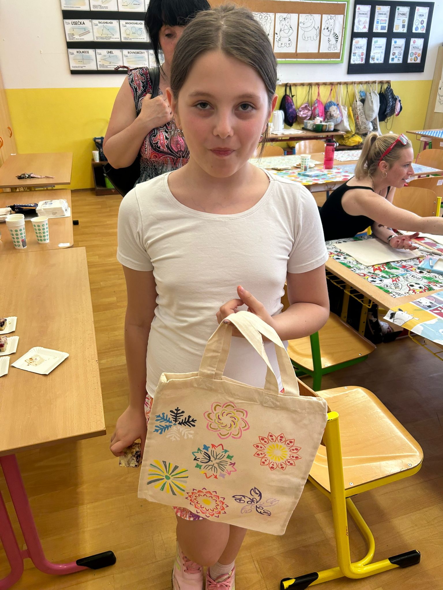 Celou akcí se nesla velmi dobrá nálada, i připravené občerstvení přišlo k chuti. Někdo na taštičky kreslil dle své fantazie, někdo použil šablony na mandaly a dokonce se zkoušely i zažehlovat ubrousky v potravinové fólii.
