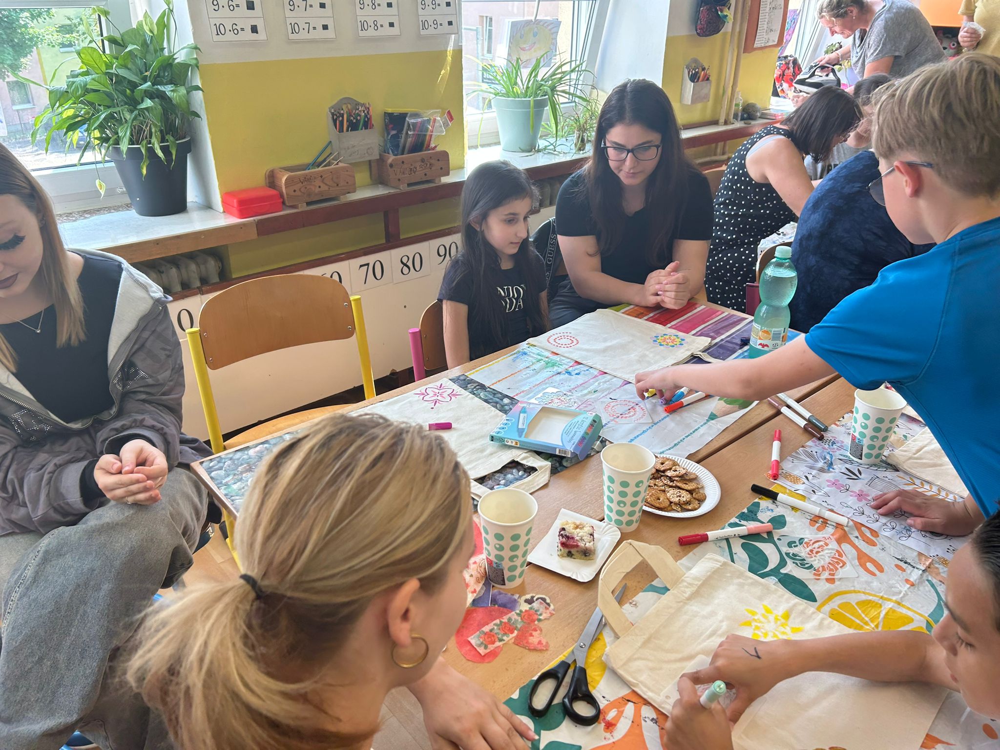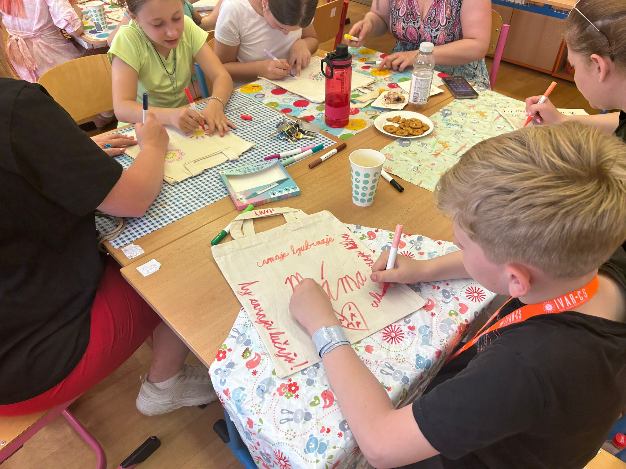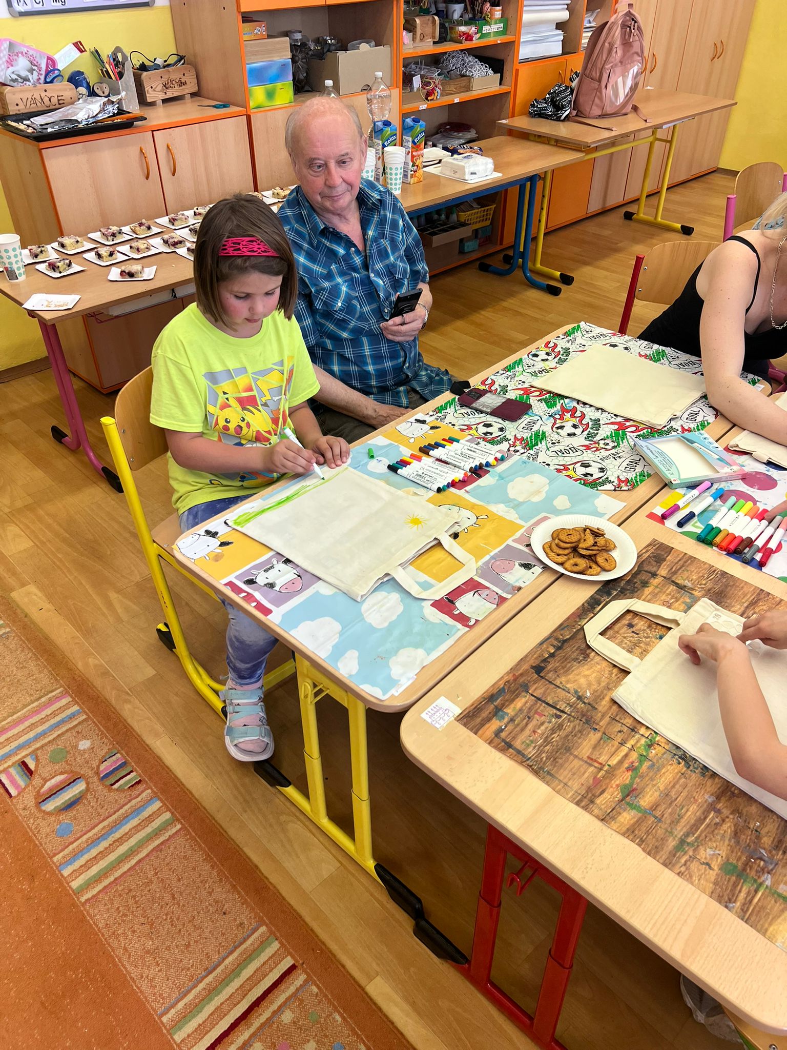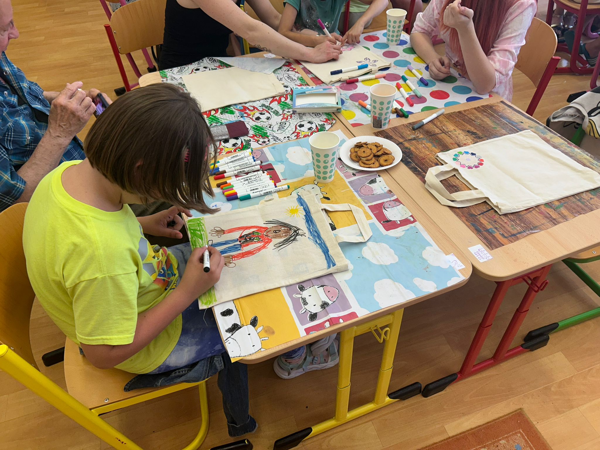 Celou akcí se nesla velmi dobrá nálada, i připravené občerstvení přišlo k chuti. Někdo na taštičky kreslil dle své fantazie, někdo použil šablony na mandaly a dokonce se zkoušely i zažehlovat ubrousky v potravinové fólii.