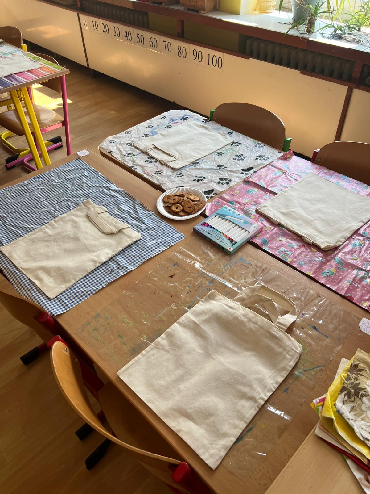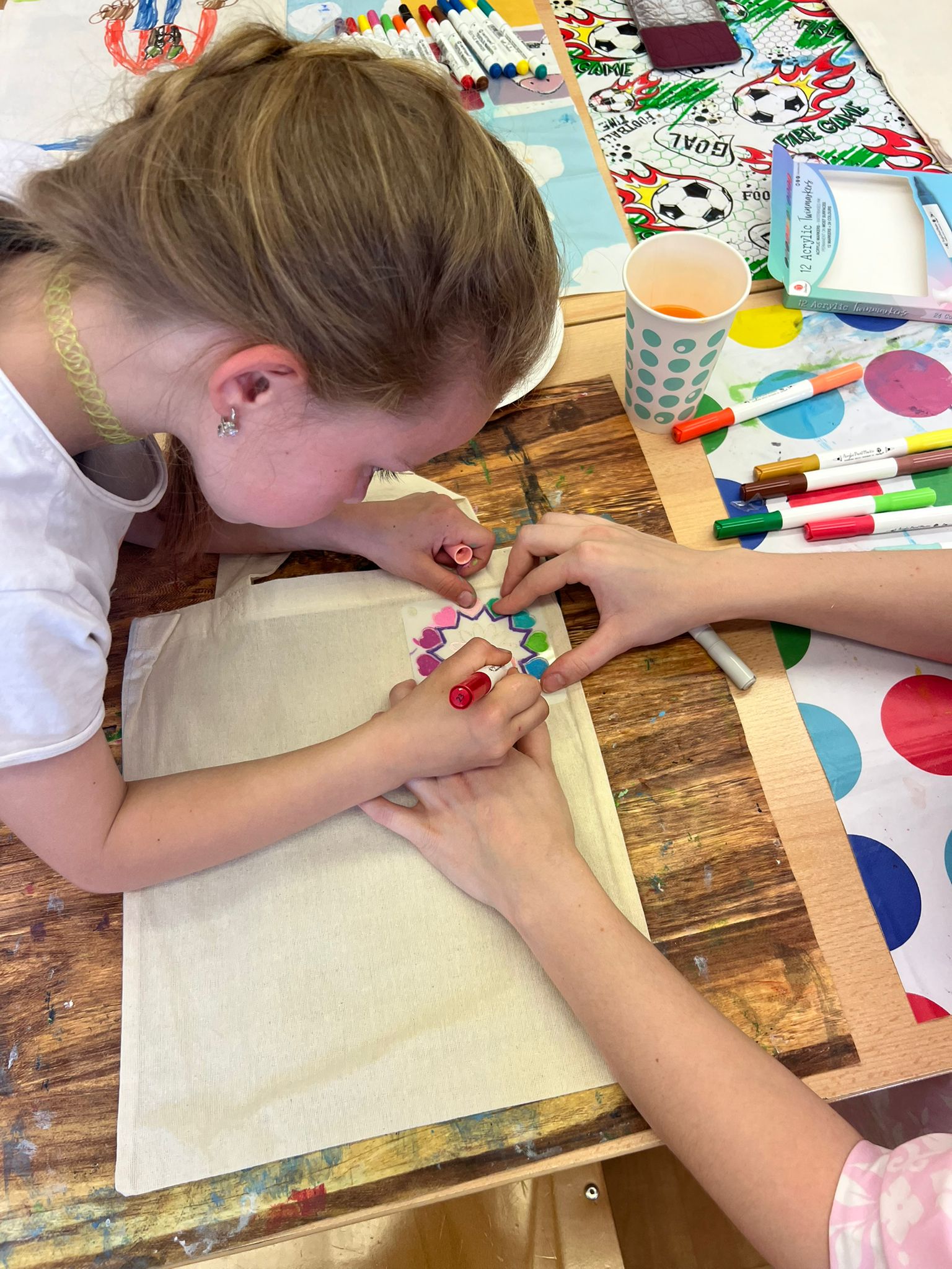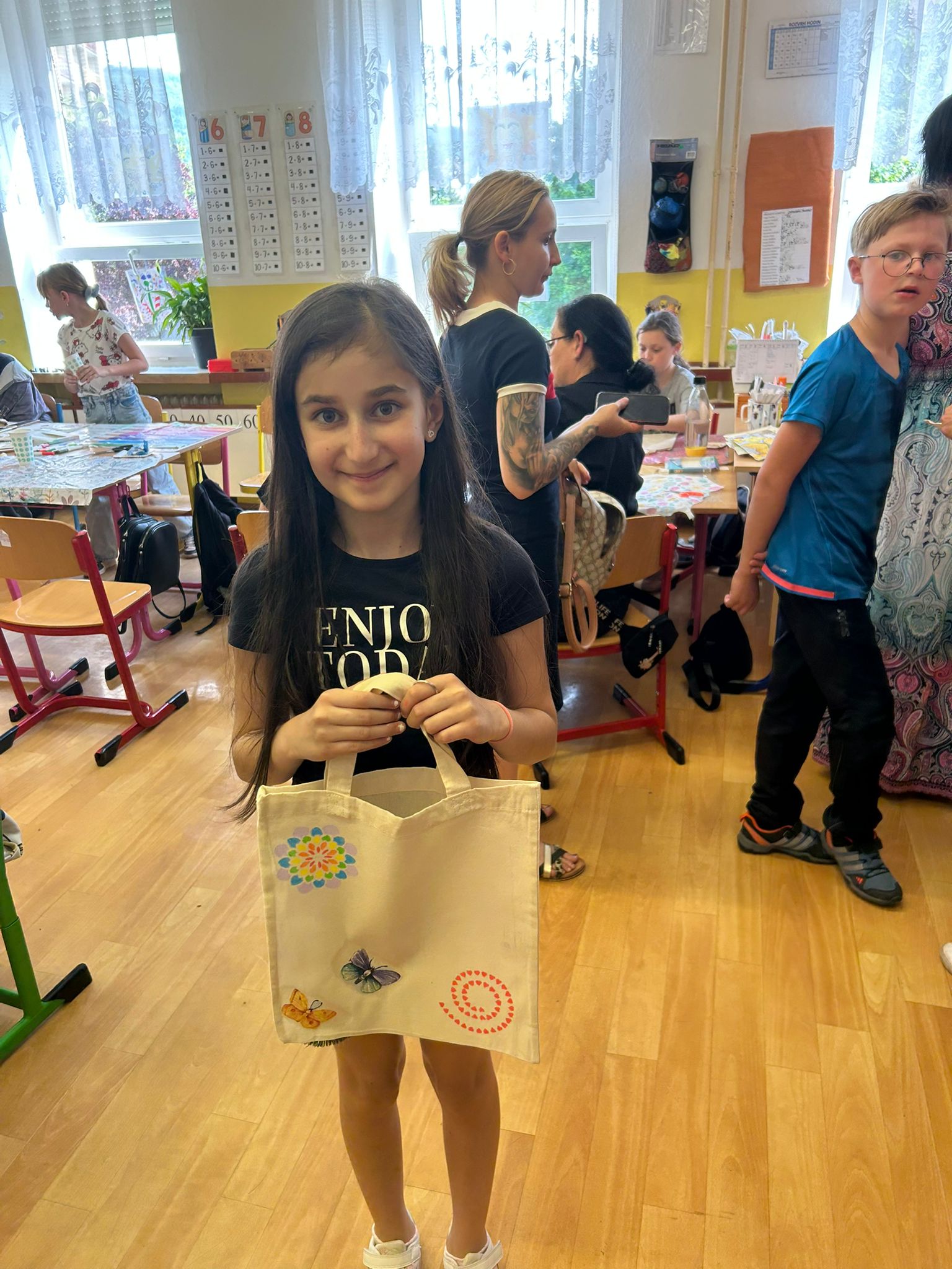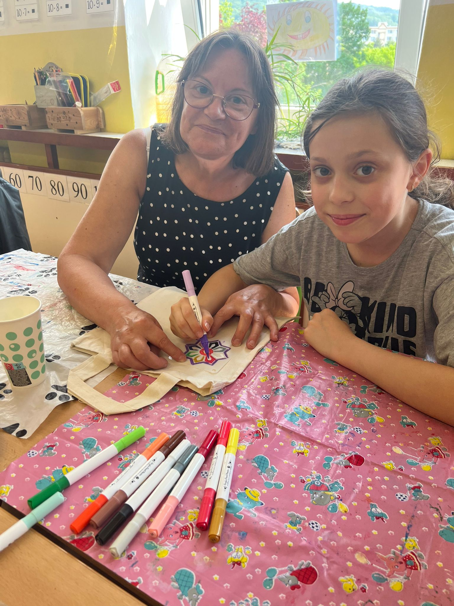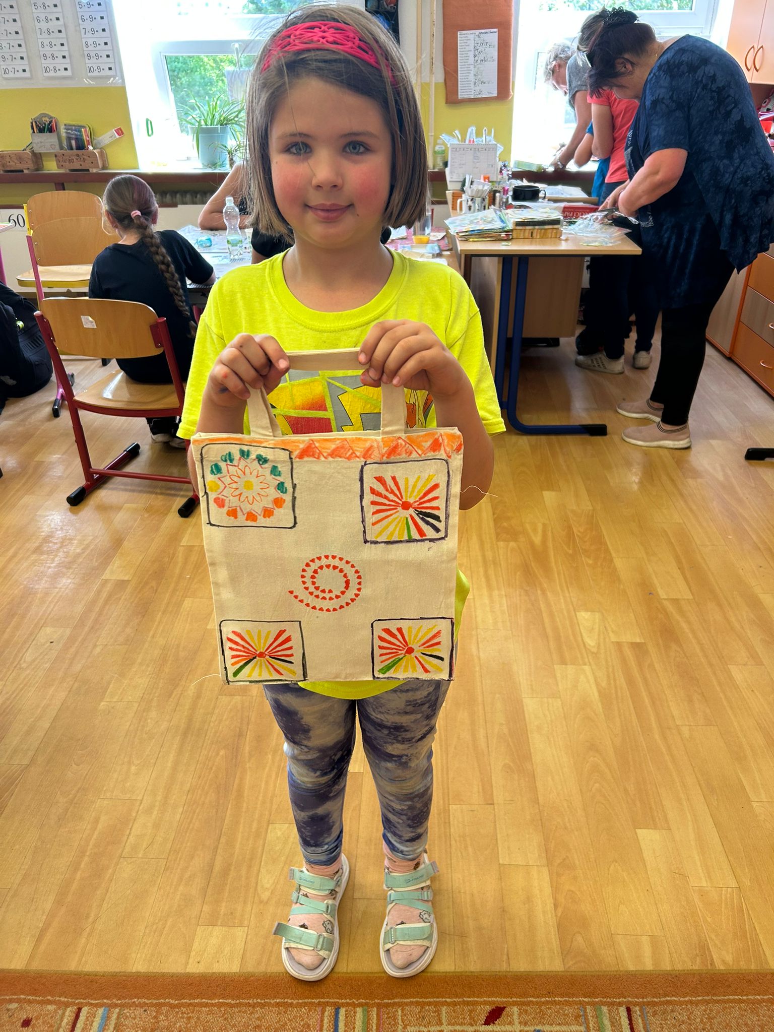 Celou akcí se nesla velmi dobrá nálada, i připravené občerstvení přišlo k chuti. Někdo na taštičky kreslil dle své fantazie, někdo použil šablony na mandaly a dokonce se zkoušely i zažehlovat ubrousky v potravinové fólii.