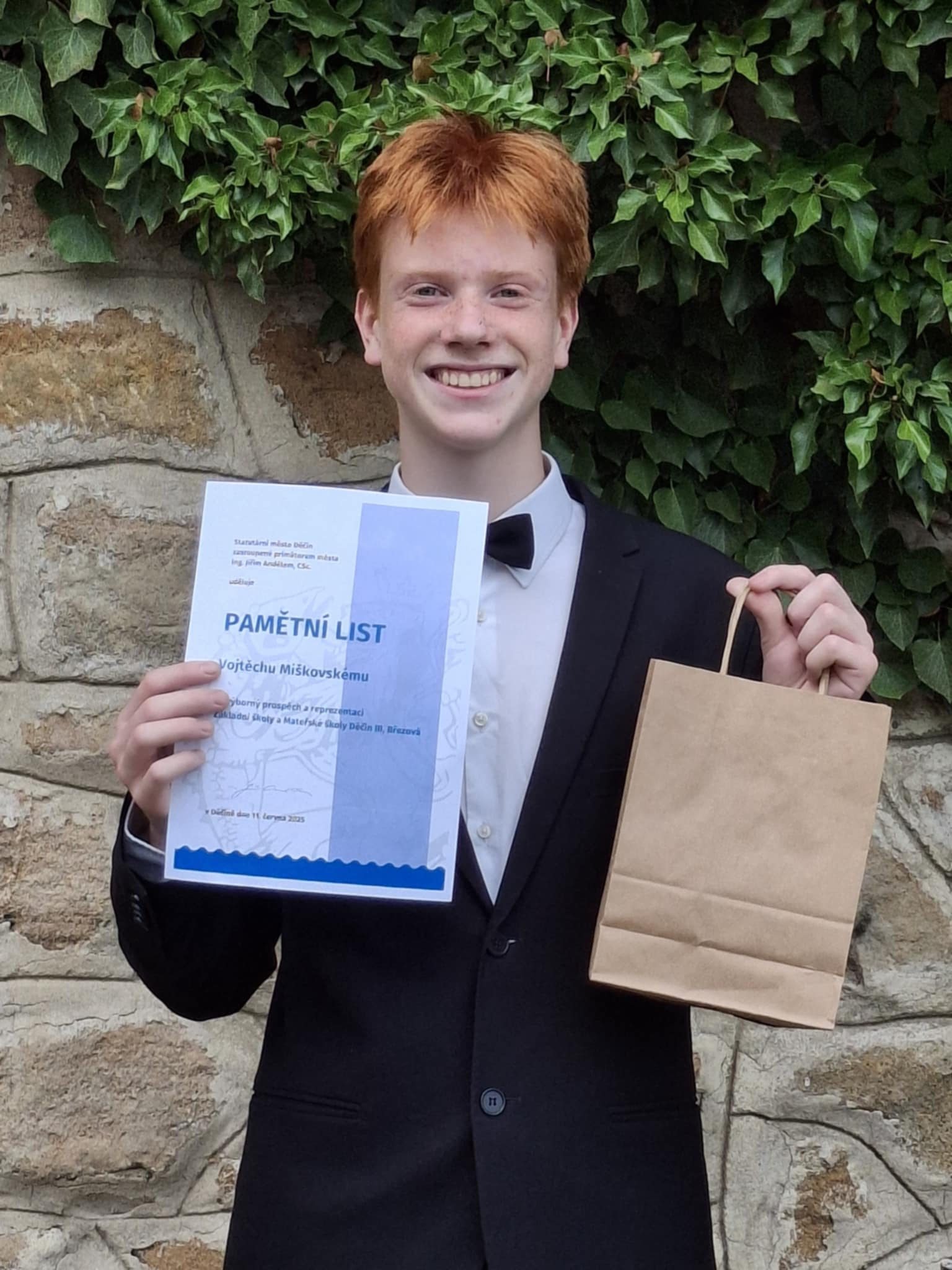 Za naši školu si pro ocenění došel Vojta Miškovský, žák 8. B a Míša Štefková, žákyně 9. B.