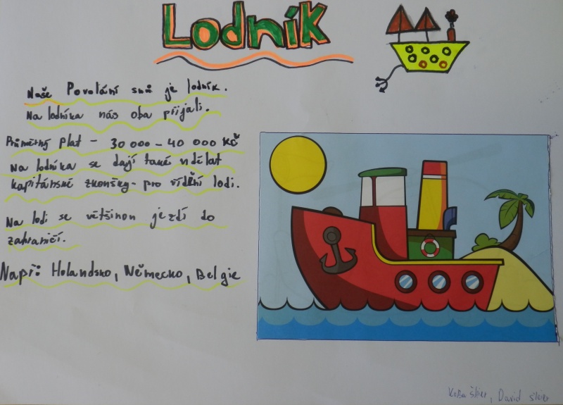 Žáci 9. ročníku zpracovávali na PC prezentace o neobvyklých povoláních, absolvovali besedu s paní Jeriovou z firmy Silike, která jim vyprávěla o svých vzorech, své volbě školy a povolání, o vlivech na tento výběr. Ve výtvarné dílně tvořili plakáty o svém povolání snů a nakonec si procvičili svou anglickou slovní zásobu při vytváření životopisu v angličtině.